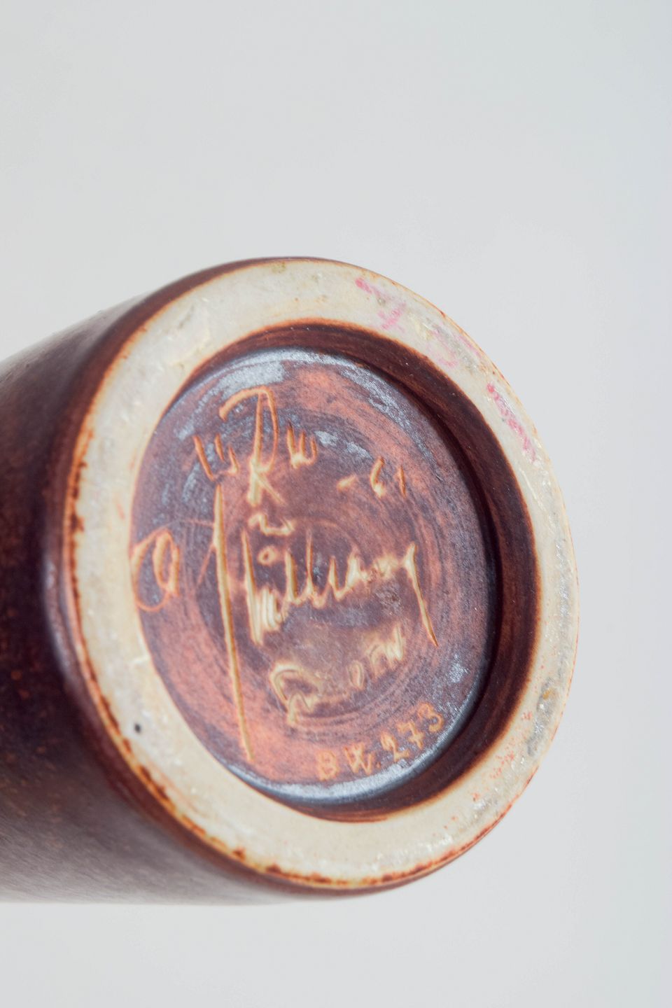 Carl-Harry Stålhane for Rörstrand, stor unika vase.Stor slank drejet vase i stentøj med brun nuanceret glasur. Unik udførelse fra Rörstrand, signeret CHS og dateret 1961. Første sortering.