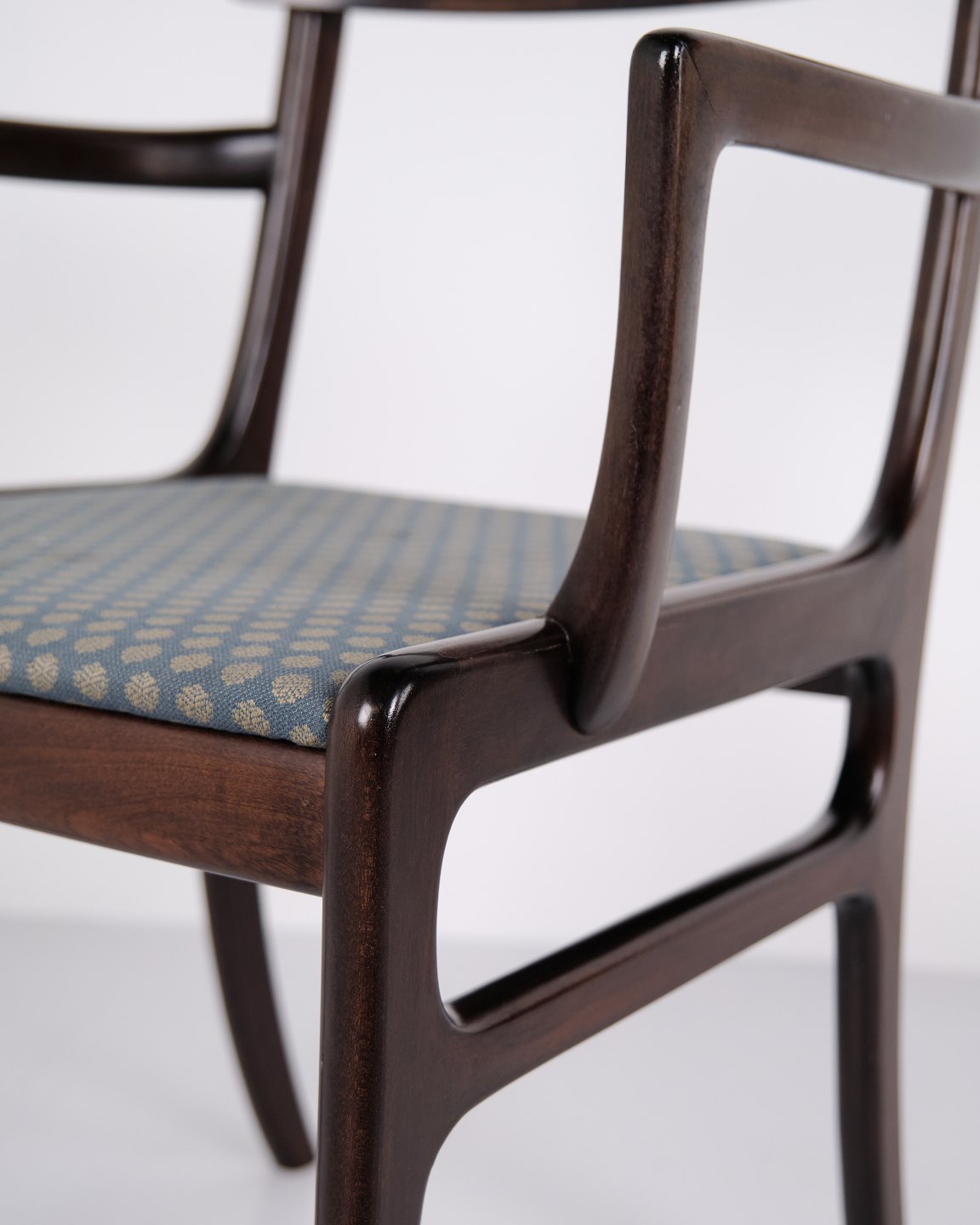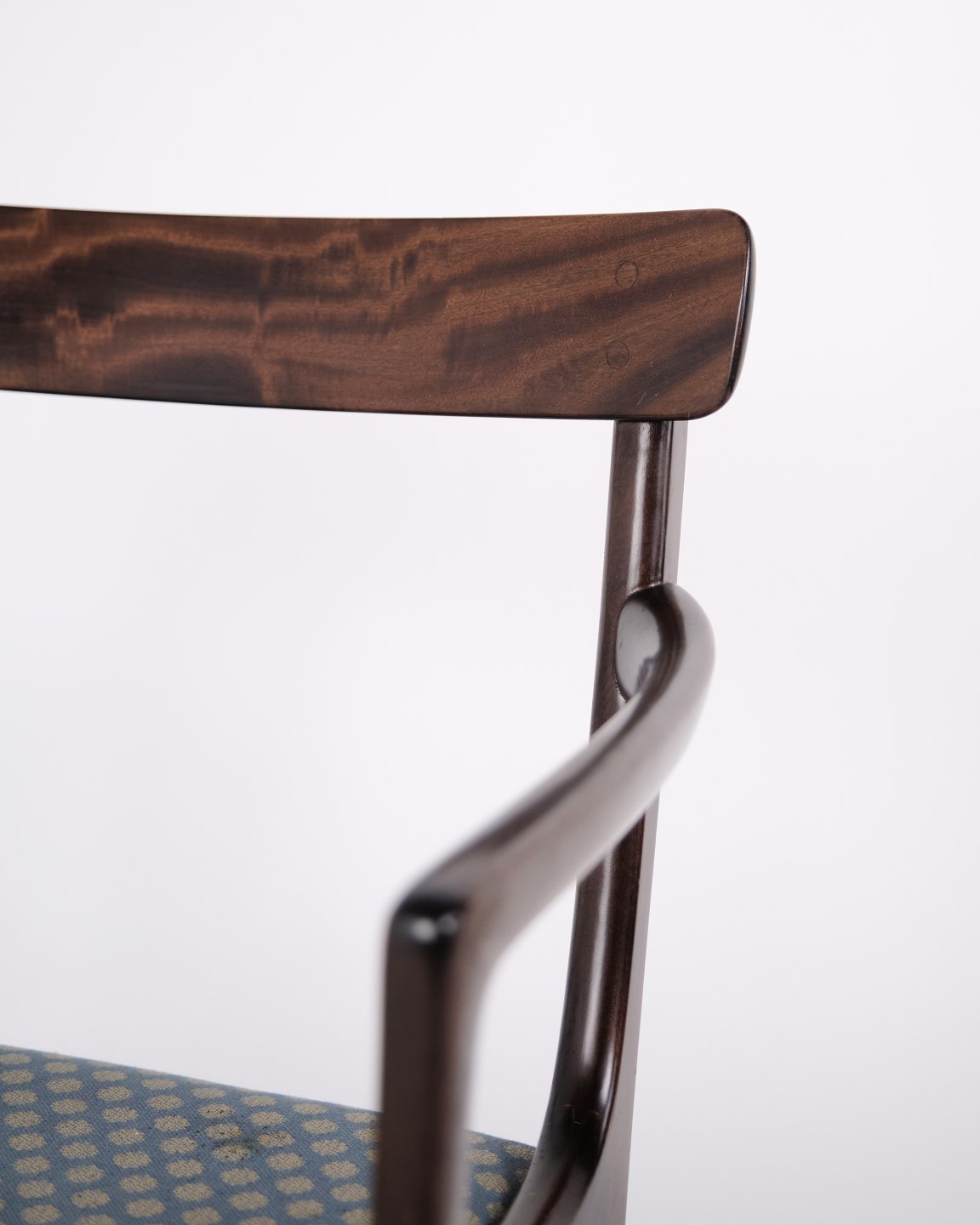 Armchair from the Rungstedlund series designed by Ole Wanscher and produced by Poul Jeppesen Møbelfabrik in Denmark during the 1950s. The chair is characterized by balanced proportions and refined cabinetmaking, reflecting the Danish furniture tradition of the mid-20th century.The Rungstedlund series is among Ole Wanscher’s well-known furniture designs and illustrates his inspiration from historical furniture types, which he reinterpreted in a lighter and more modern Scandinavian style. The result is a chair with an elegant and understated appearance that combines comfort with high craftsmanship.