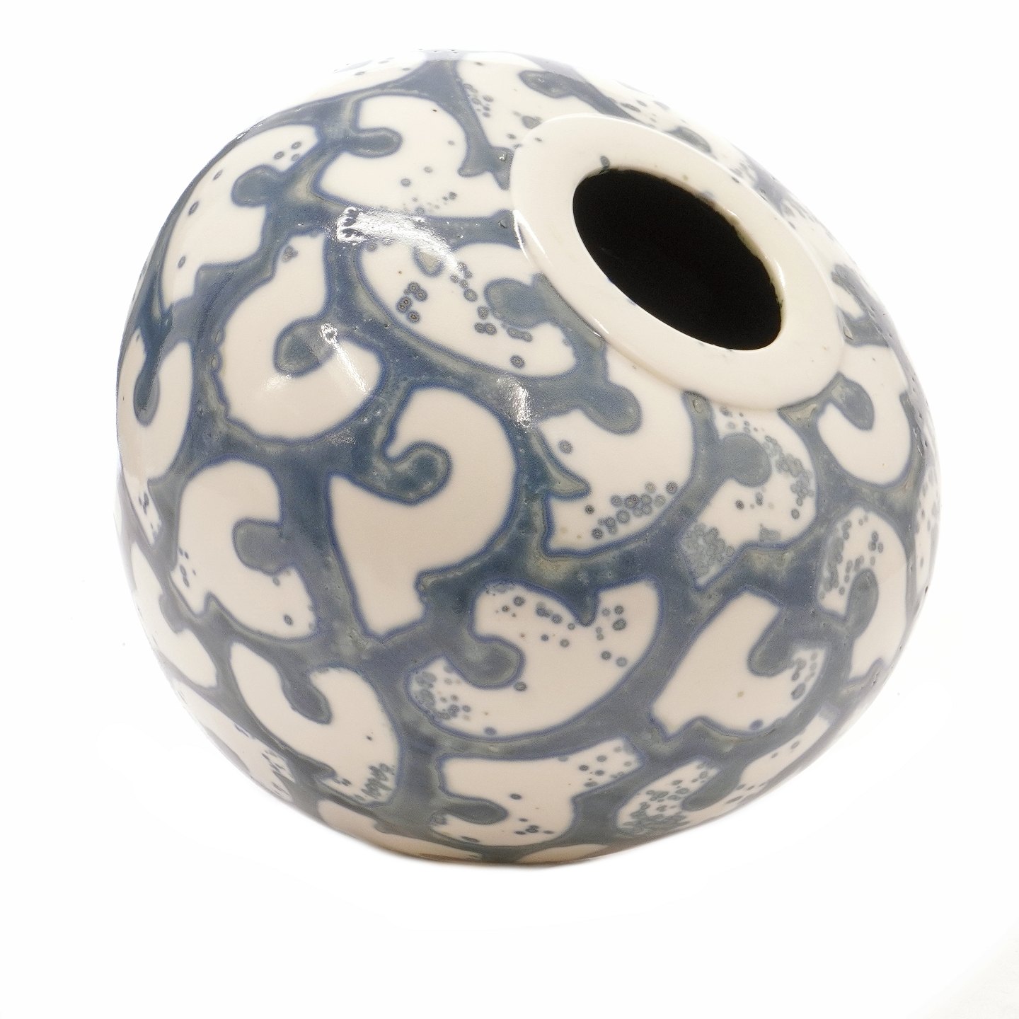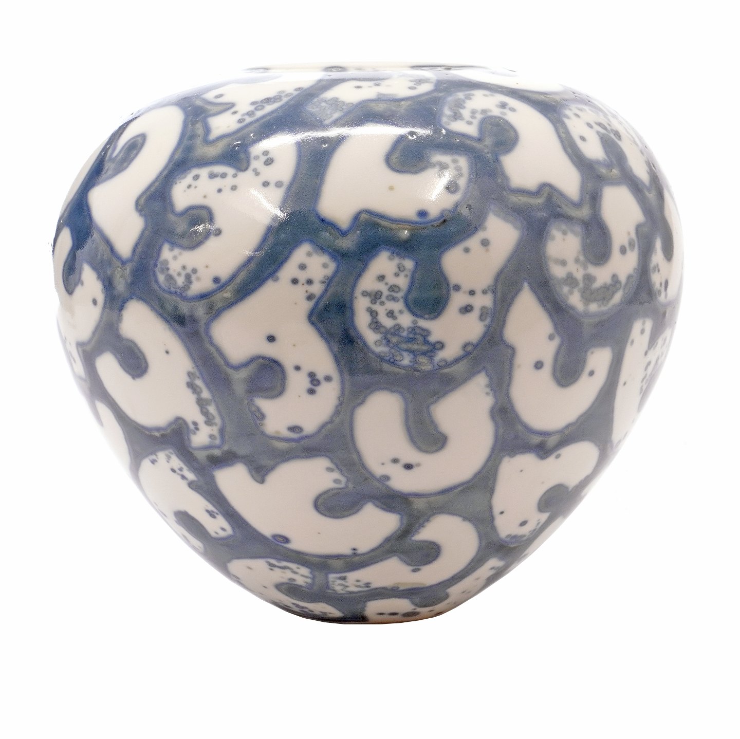 Per Weiss vasePer Weiss, 1953-2023, vase i stentøj med blå glasur og geometrisk mønster