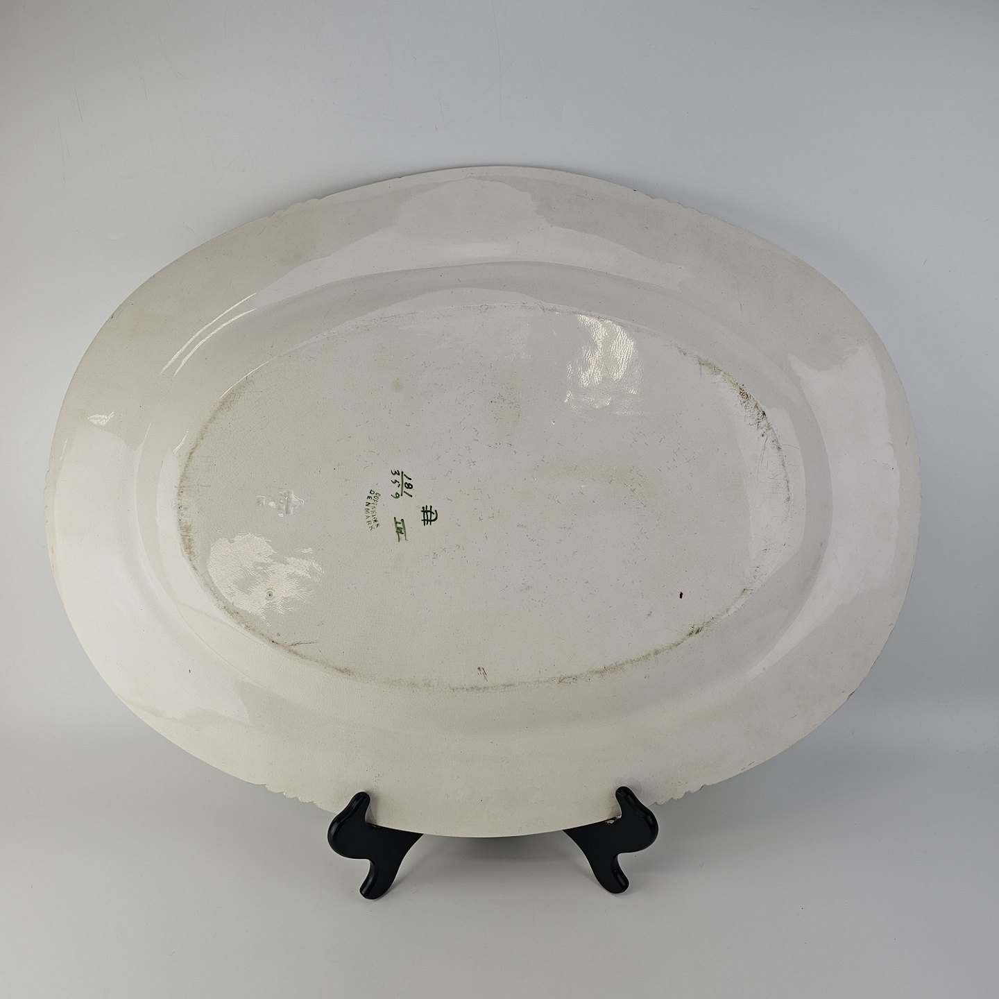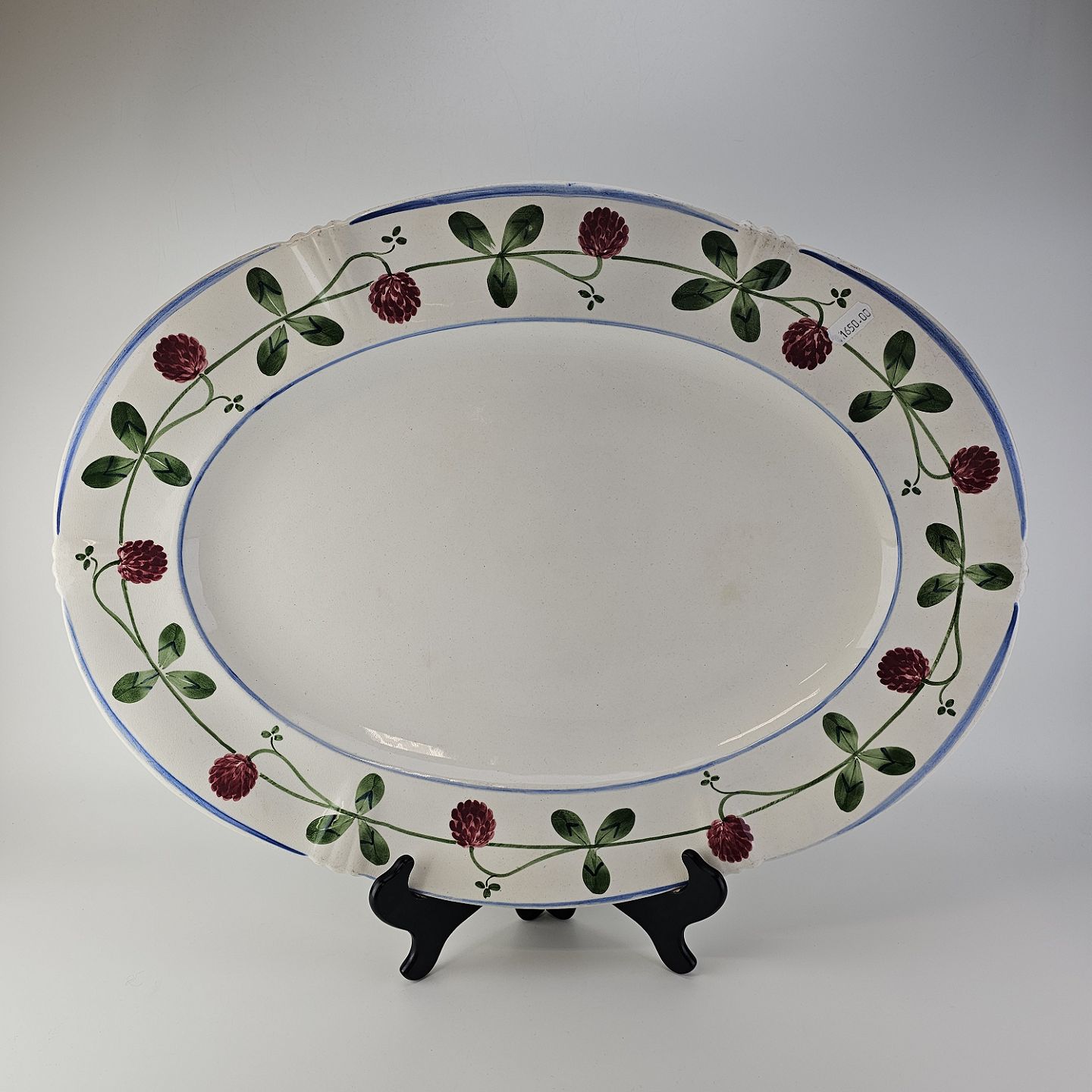 Ovalt fad i kunstfajance fra stellet Kløver. Nr. 181/359Formgiver H. Slott-Møller år 1904