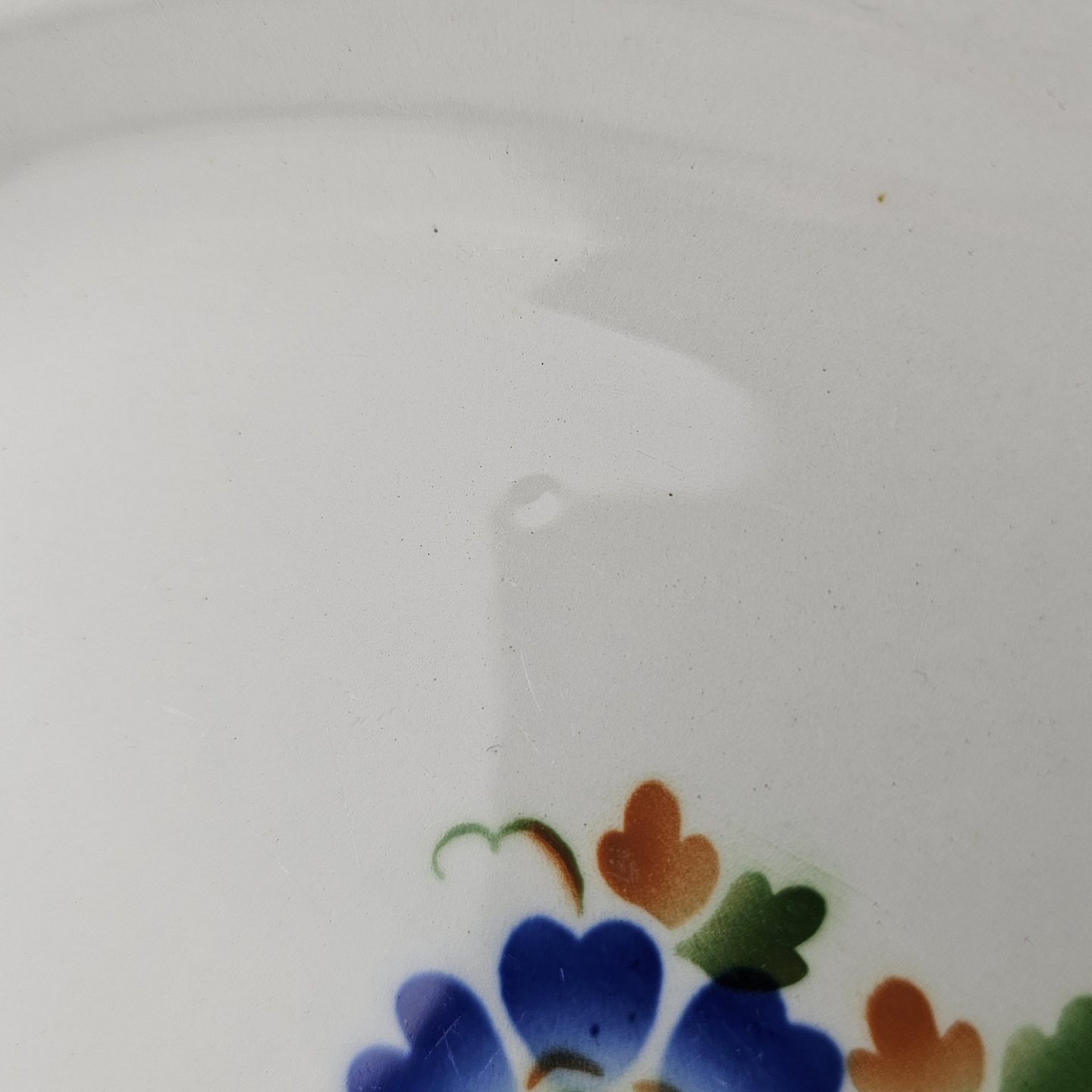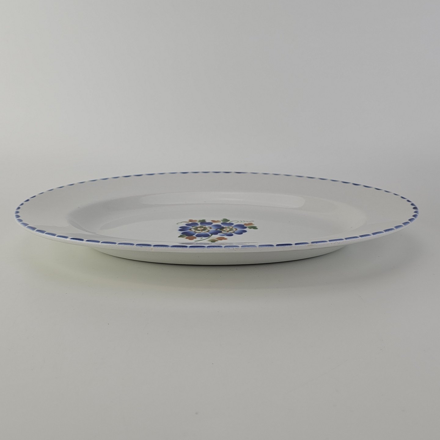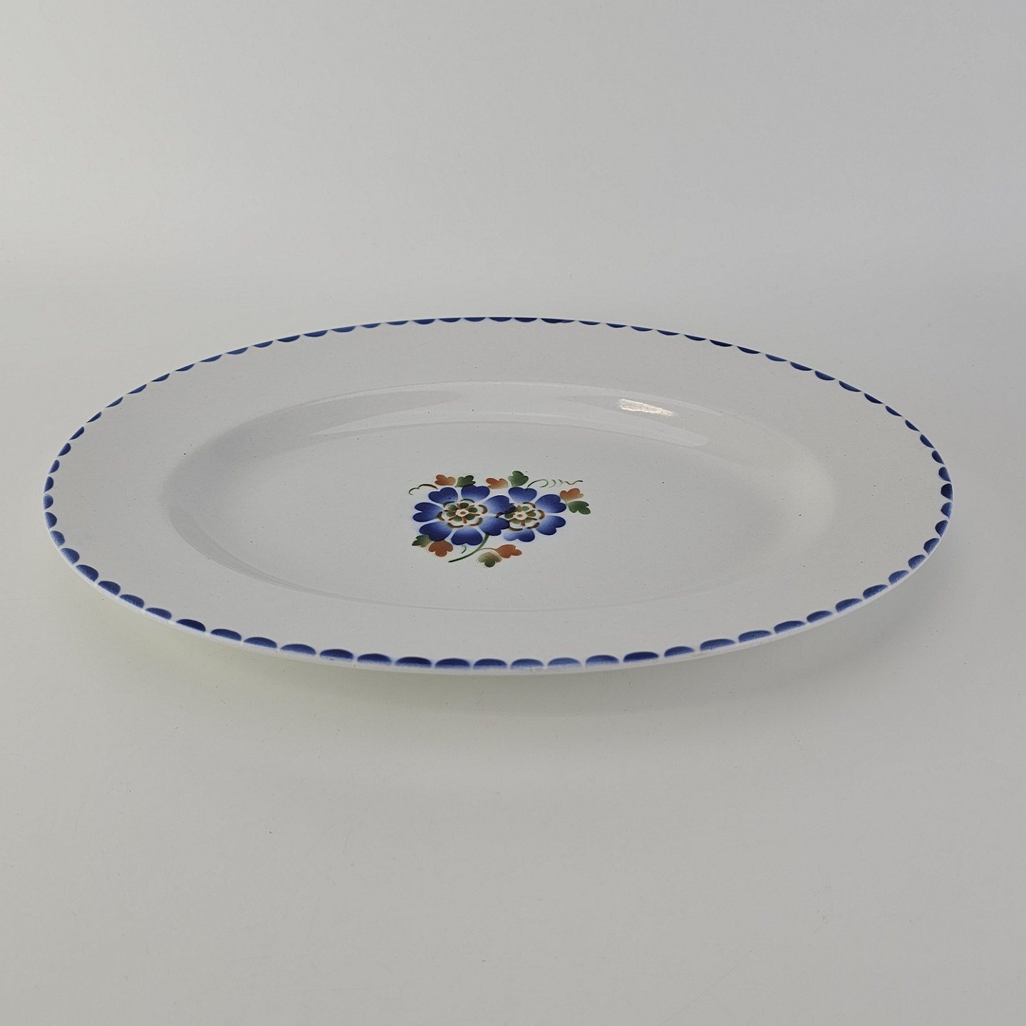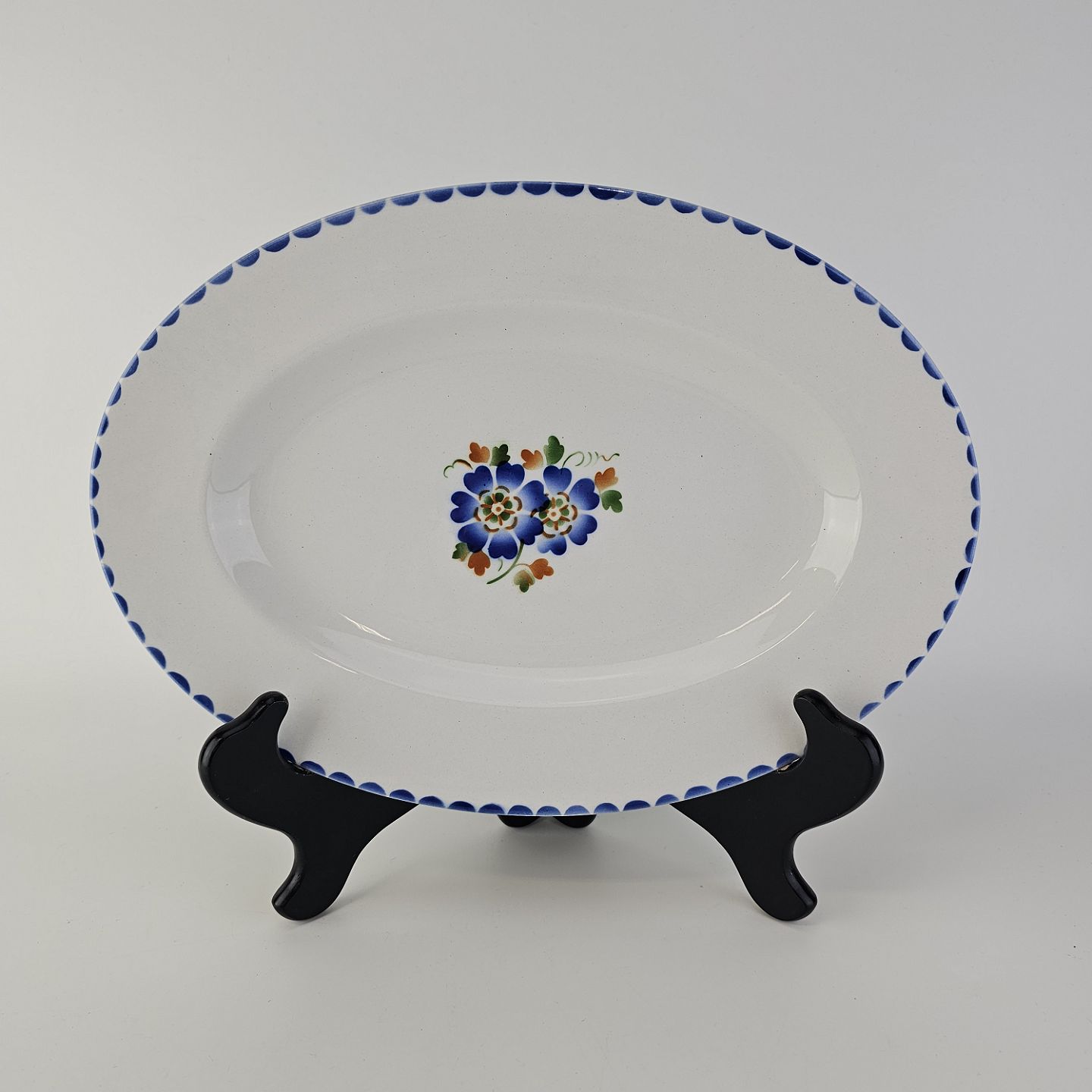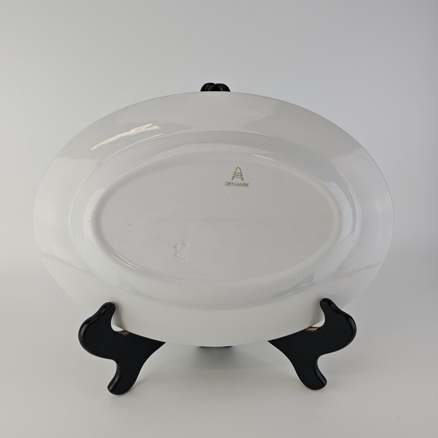 Ovalt fad i fajance fra stellet Geranium II fremstillet i perioden 1927-1940.Formgiver Nils Thorsson