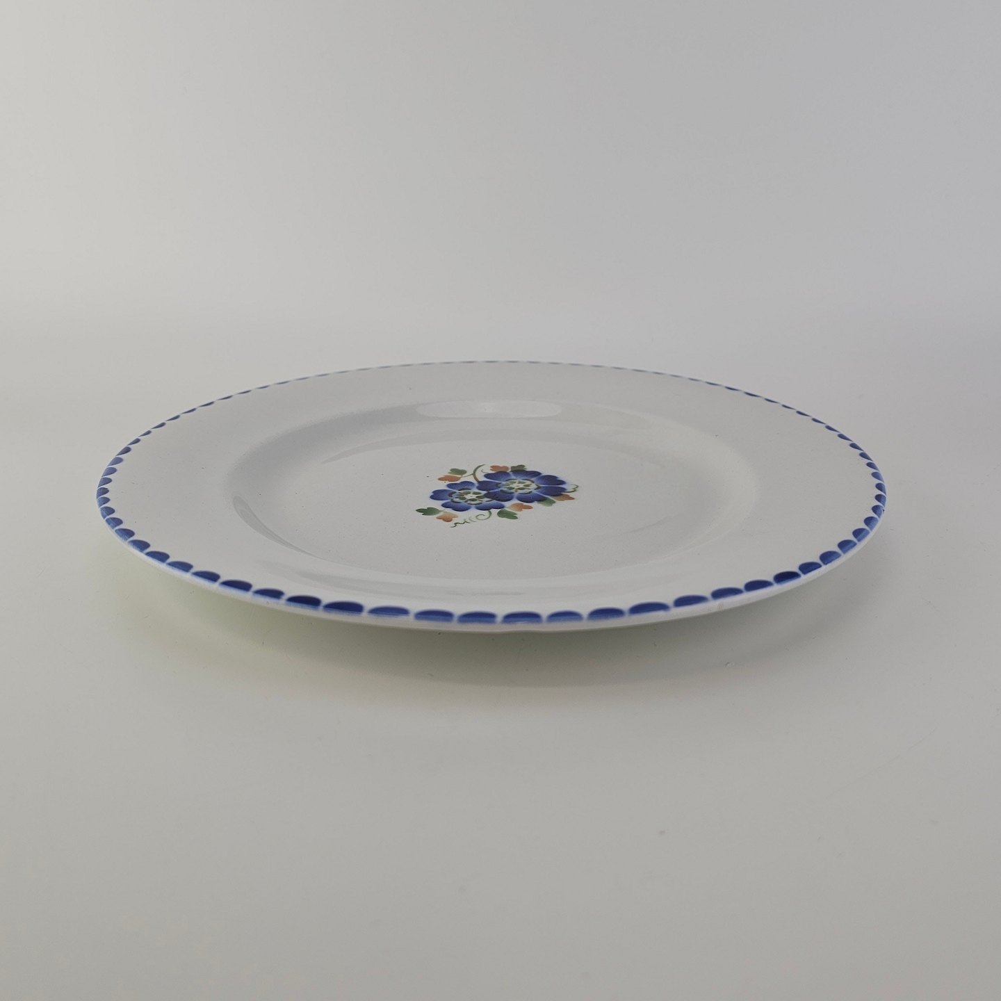 Flad middagstallerken i fajance fra stellet Geranium II fremstillet i perioden 1927-1940.Formgiver Nils Thorsson