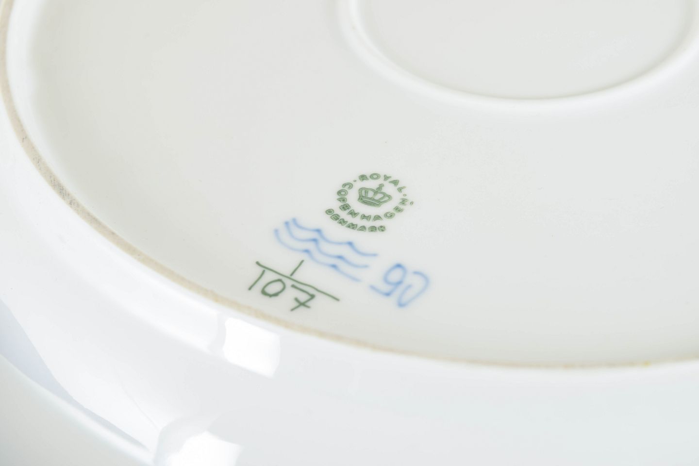 Royal Copenhagen blev grundlagt i 1775 i København under kongelig bevilling. Fabrikken er internationalt anerkendt for sit håndmalede porcelæn og sit høje kunstneriske niveau. Musselmalet Riflet er fabrikkens mest klassiske stel, introduceret i slutningen af 1700-tallet og fortsat produceret med traditionel håndmalingsteknik.
