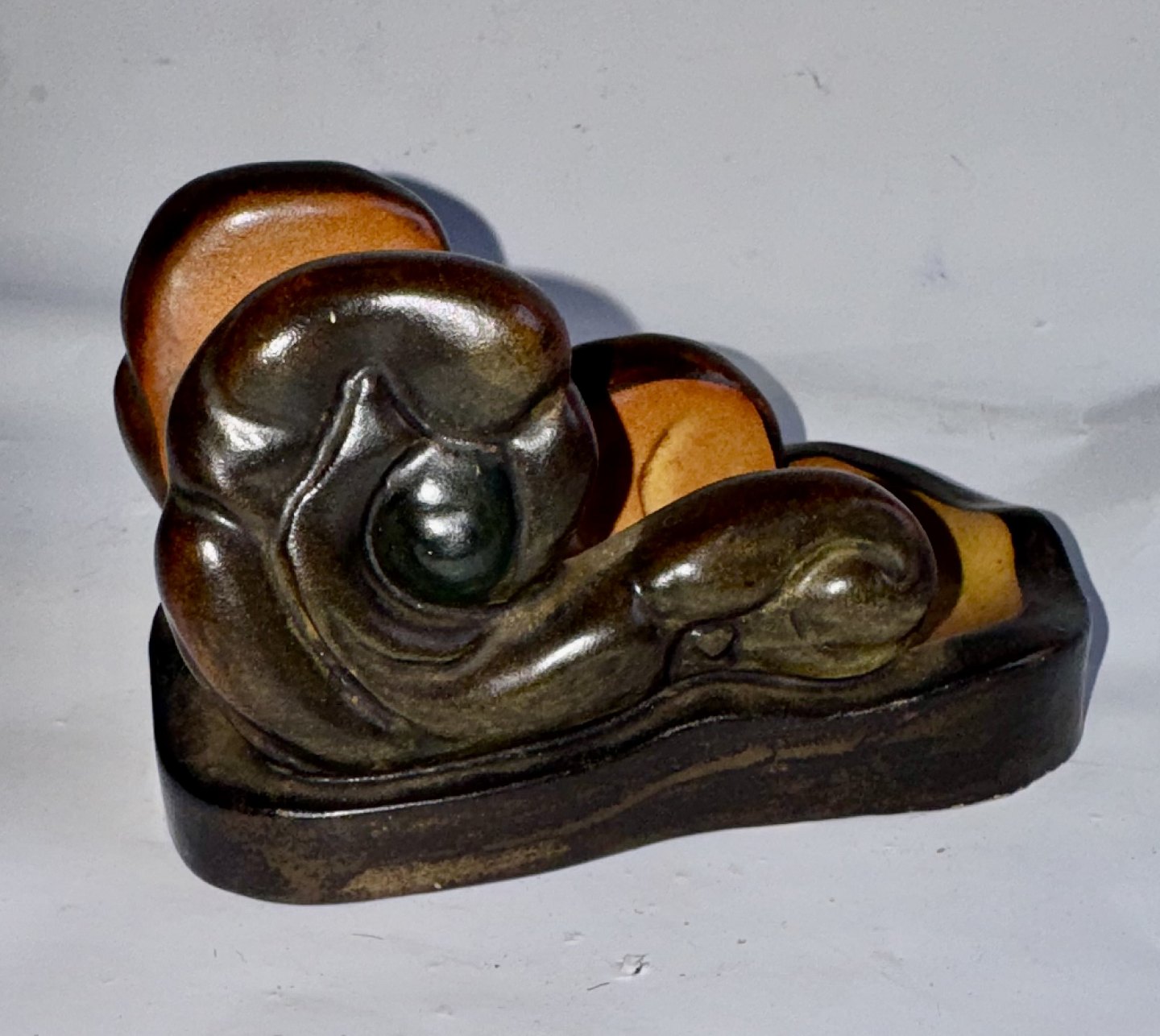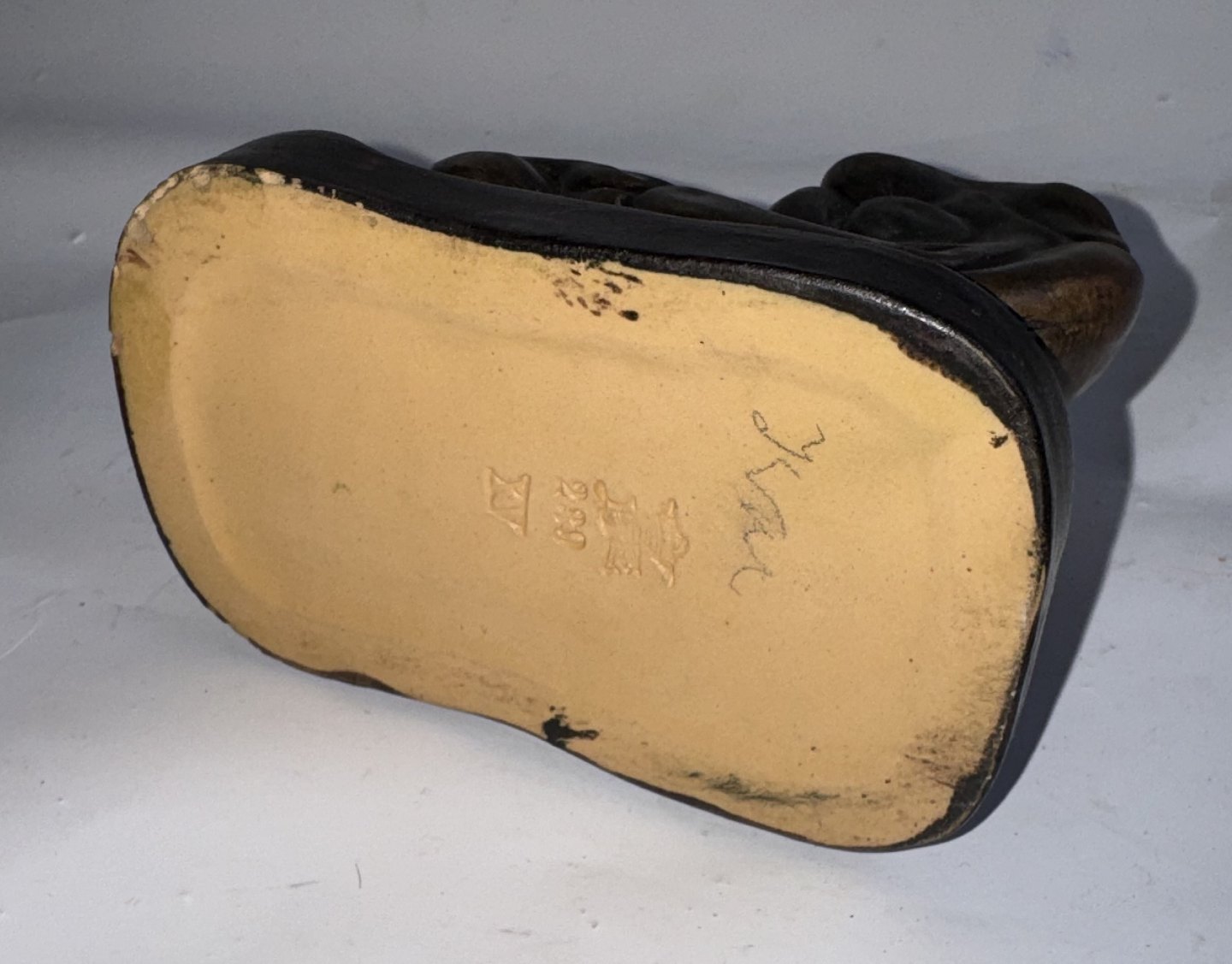 Art Nouveau stil:Tændstikæske holder i keramik fra Peter Ipsens Enke. Fremstår i god stand uden skader. Har dog lidt brugsspor på kanten - et par overflade “nålestik”. Fabriksmærket på bunden med fabrikkens logo PIE samt en krone og modelnummer 239. Mål: H. 6,6 cm, B. 6,8 cm og L. 11,5 cm.