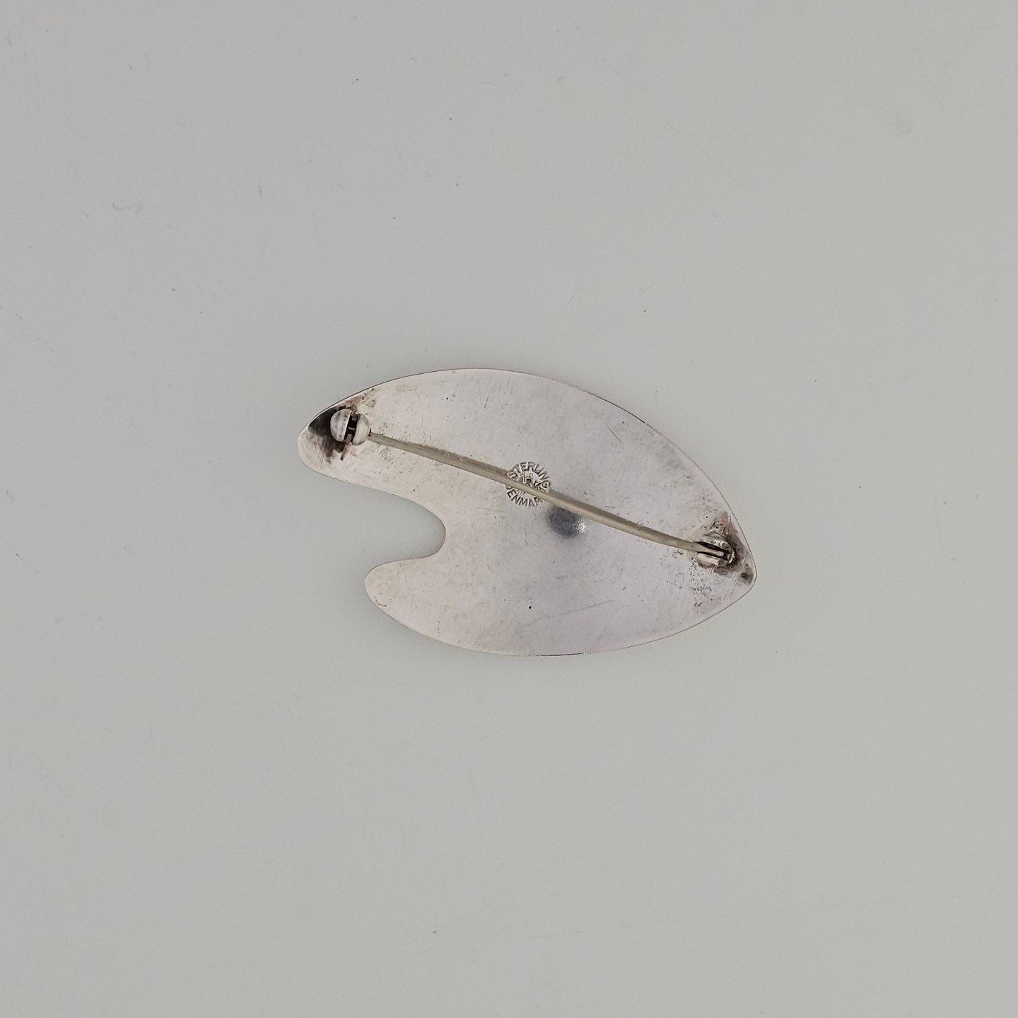 Broche i sterling sølv med motiv af et bladProducent Aare & Krogs (1949-1990)