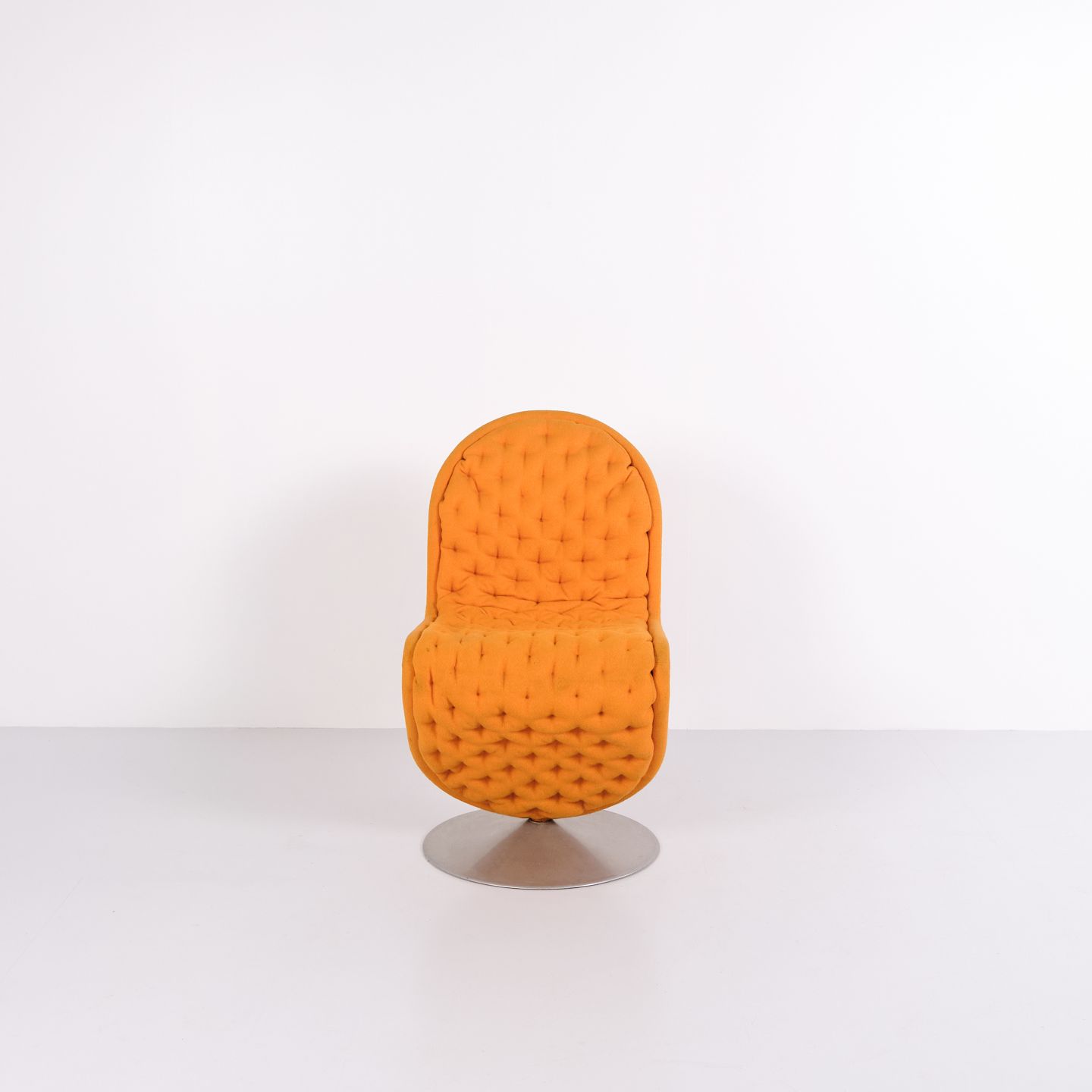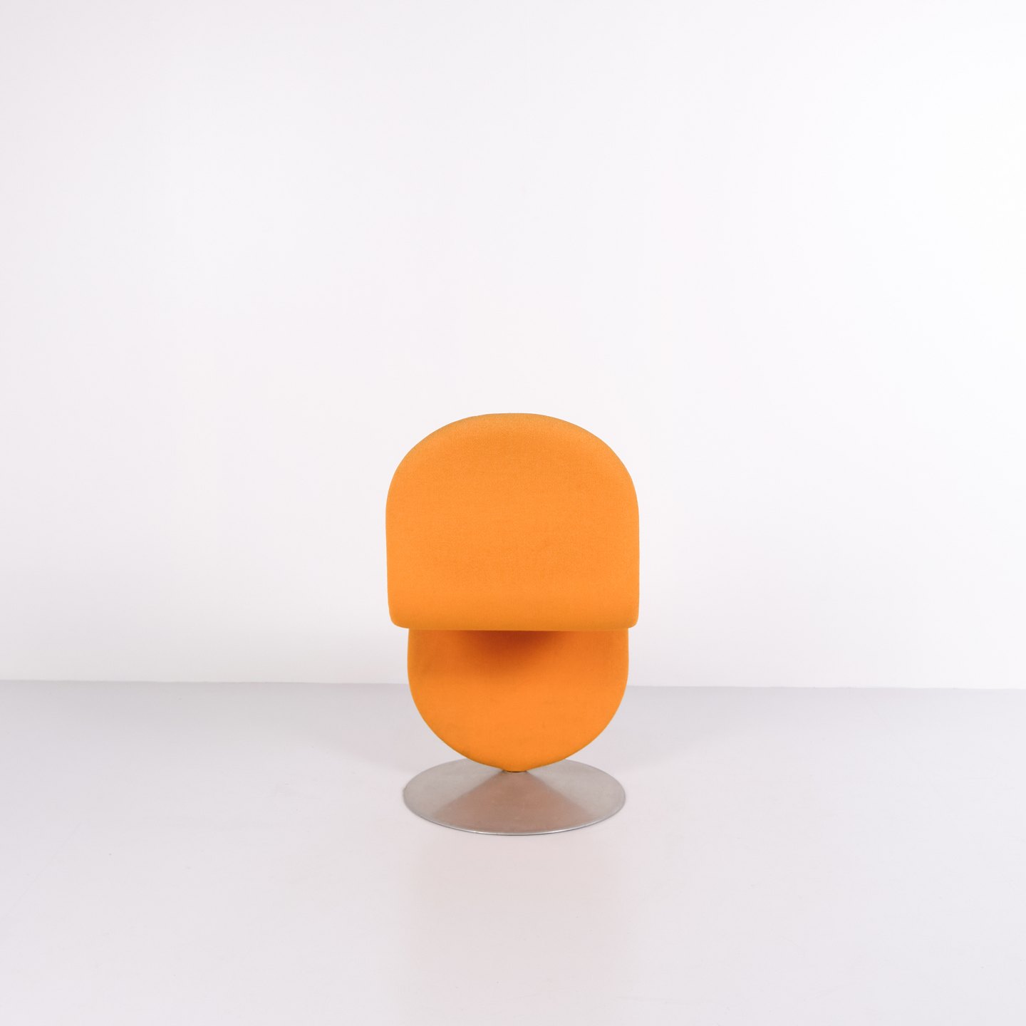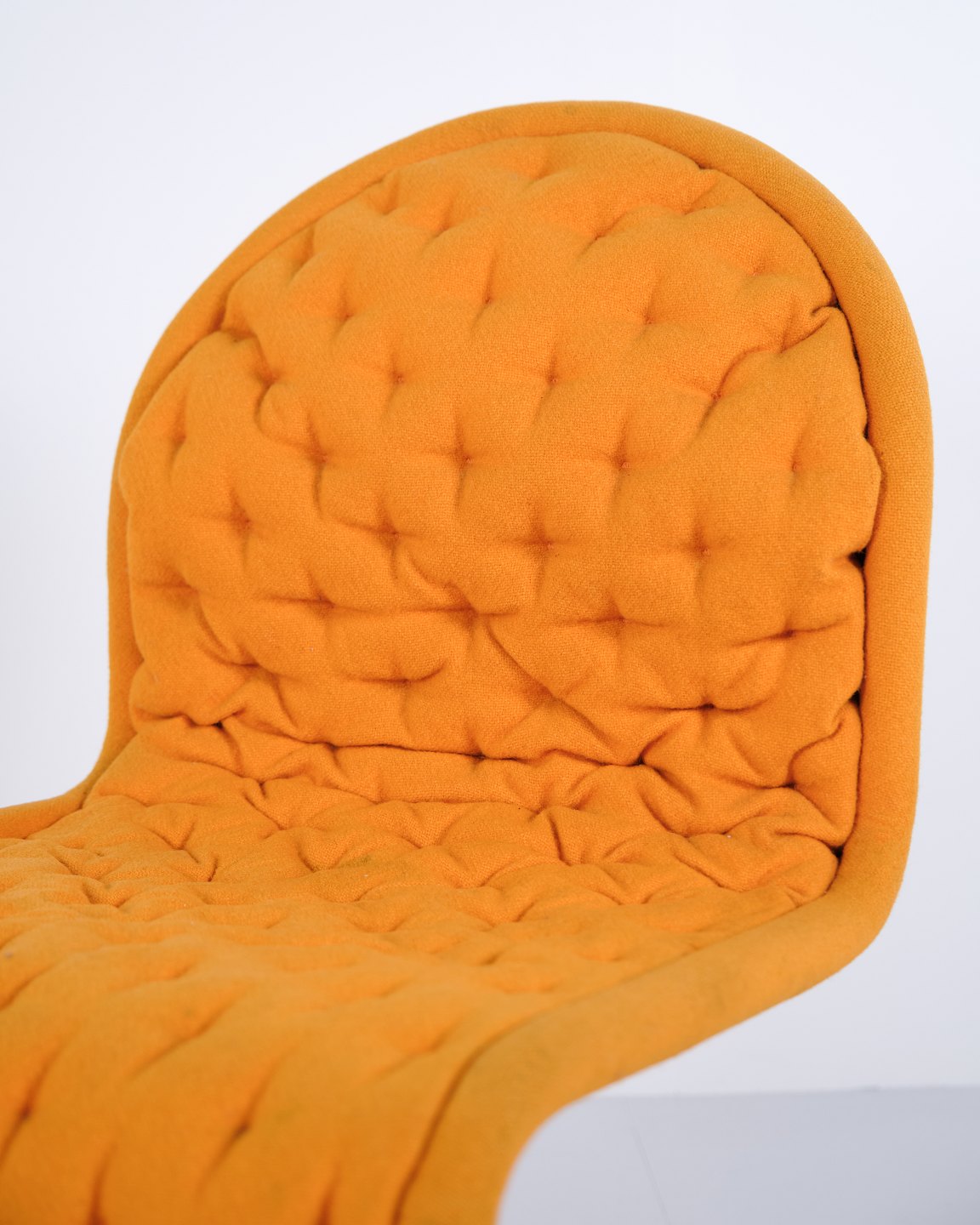 Chaise du système 1-2-3 conçue par Verner Panton et fabriquée par Fritz Hansen dans les années 1970. La chaise présente un langage de forme simple et épuré, axé sur le confort et la fonction, typique du travail de Panton, où les matériaux modernes et les constructions innovantes jouent un rôle central.— Origine : Danemark