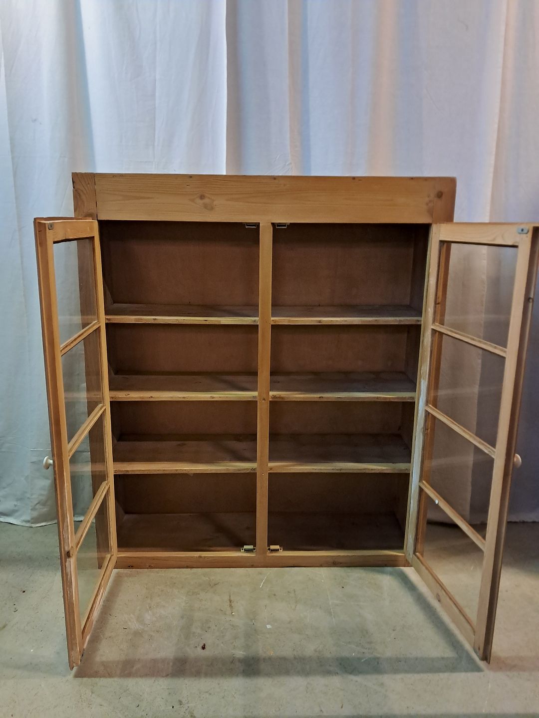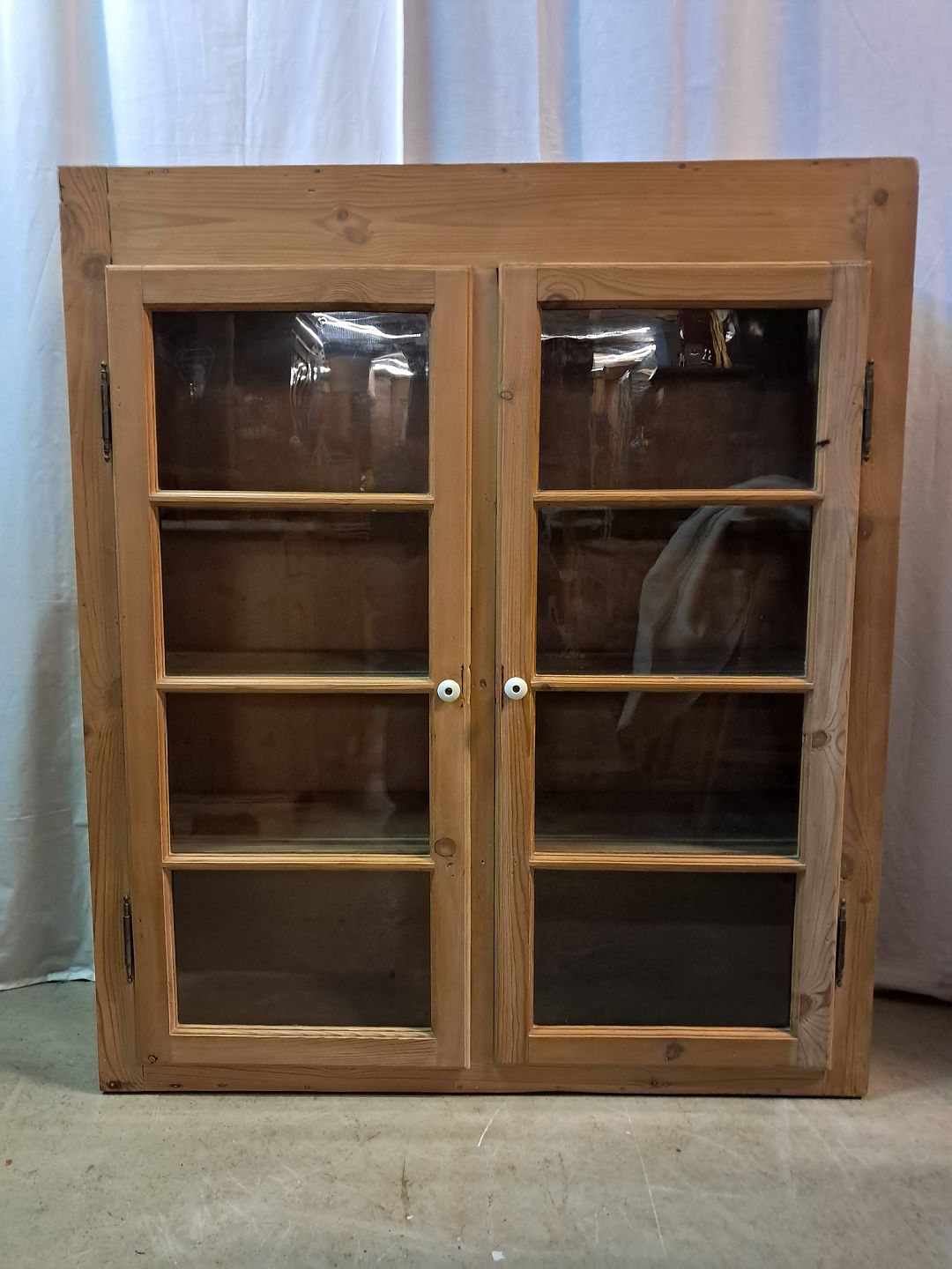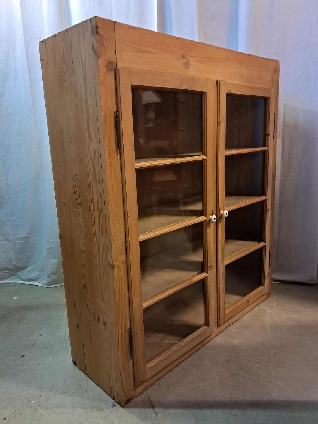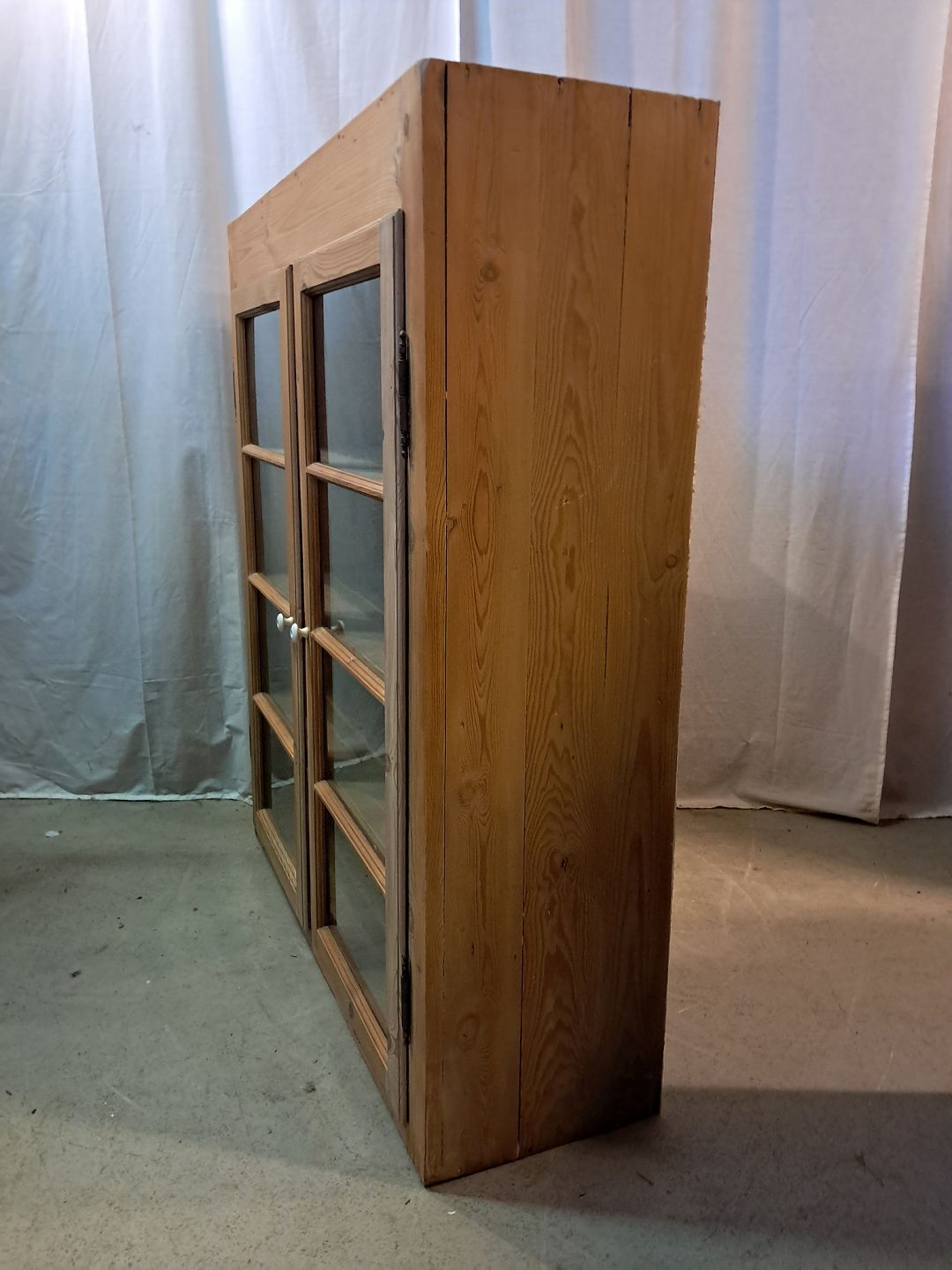 Gammelt køkkenskab i massivt fyrretræ, fra 1920erne.Det har brugsspor.