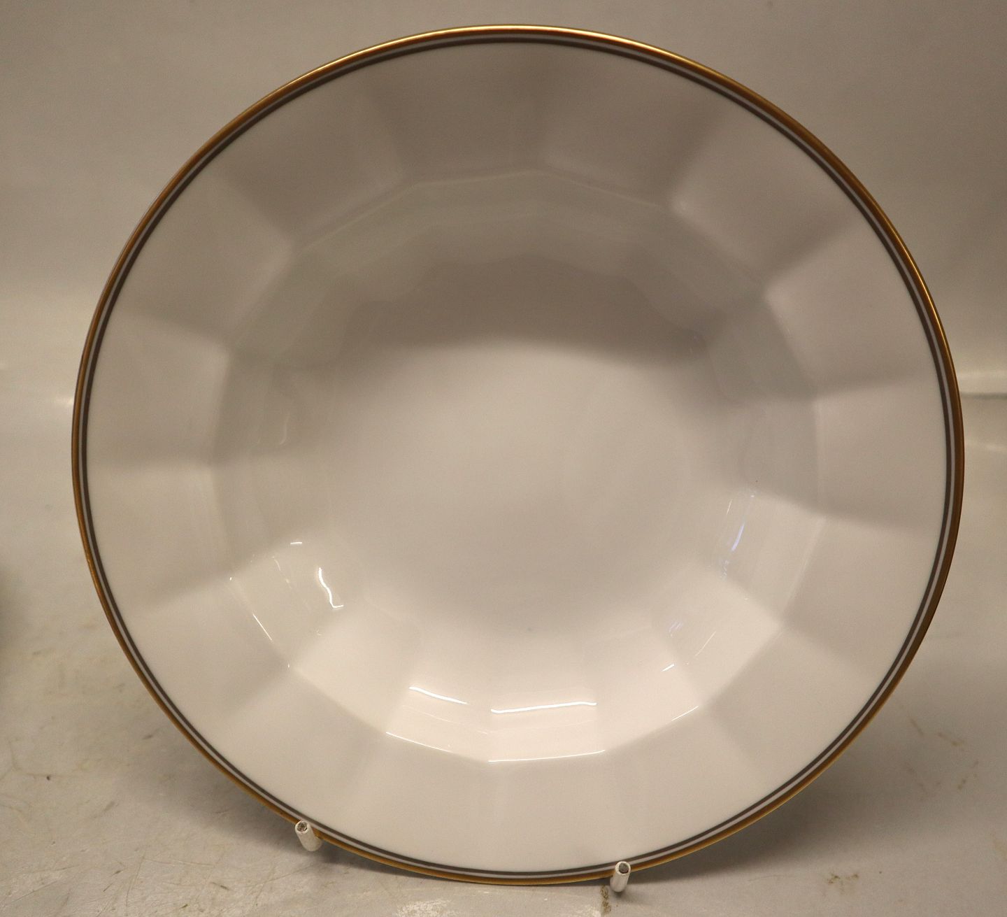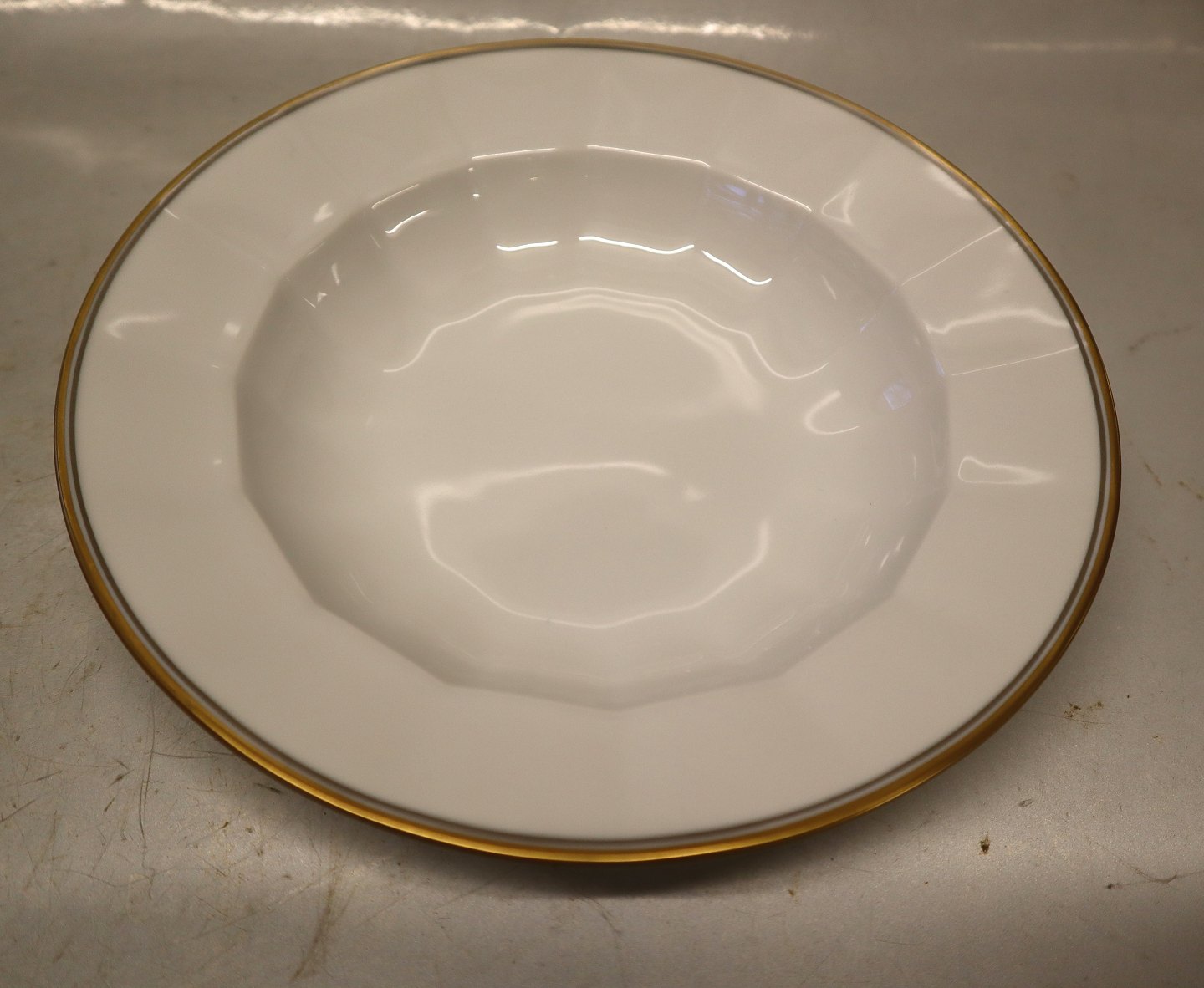 12 stk på lager8547-1535 Small rim soup plate ca 21,2 cm (604) gold & grey lines Palace (Palads) Kantet Royal Copenhagen. I fin og hel brugt stand. Kgl.