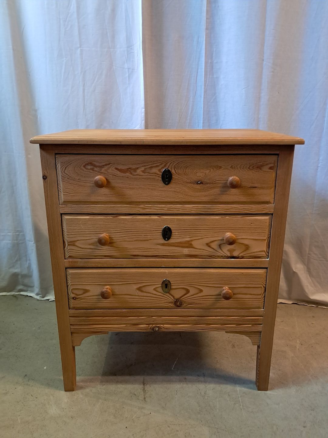 Kommode i masivt fyrretræ, fra 1930erne.Den har brugsspor.