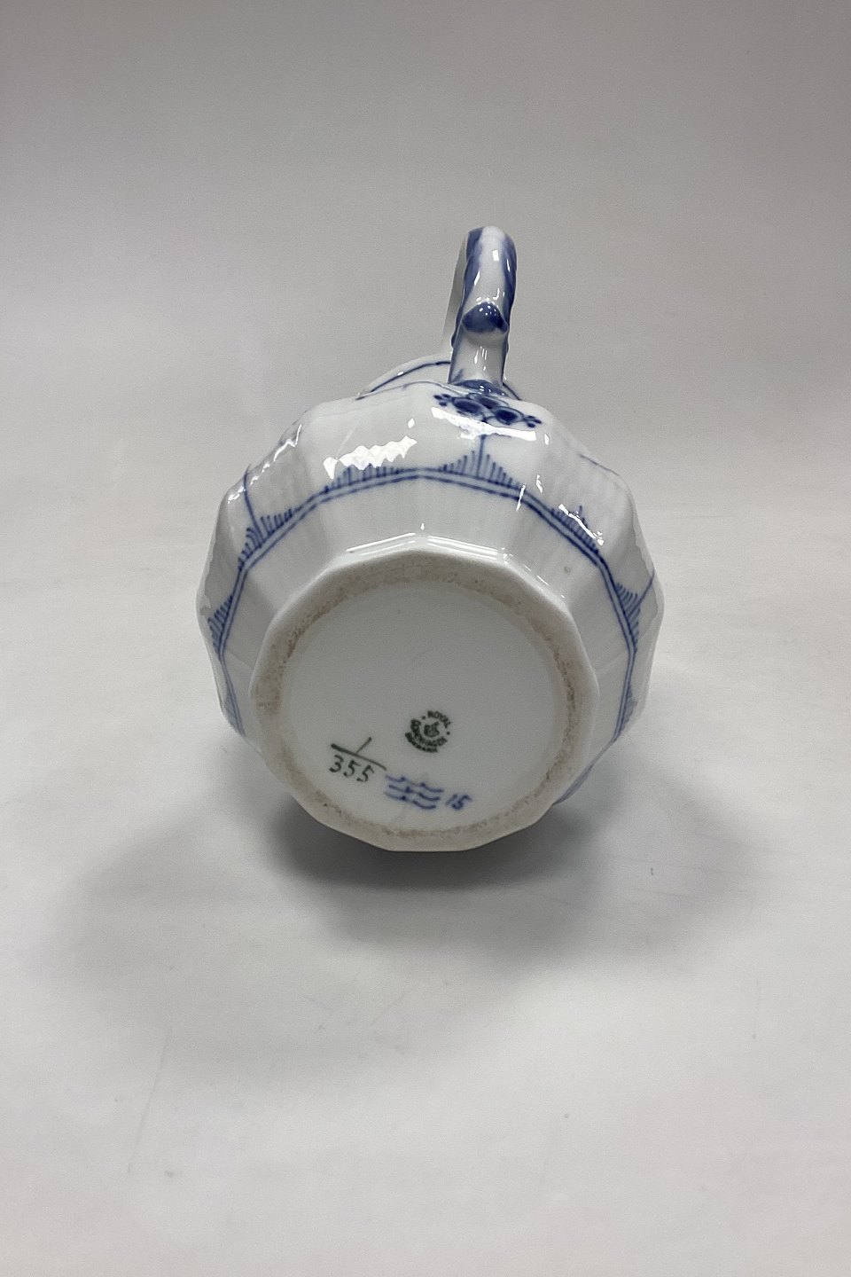 Royal Copenhagen Musselmalet Riflet Kande No. 355. Måler 20 cm / 7.87 in.2. Sortering i fin stand.