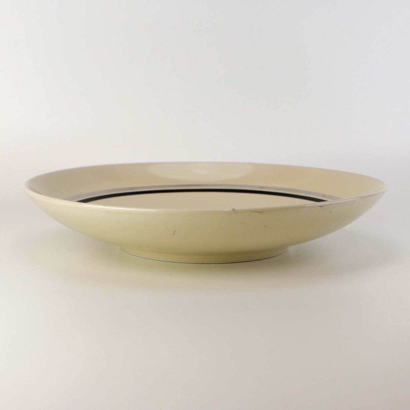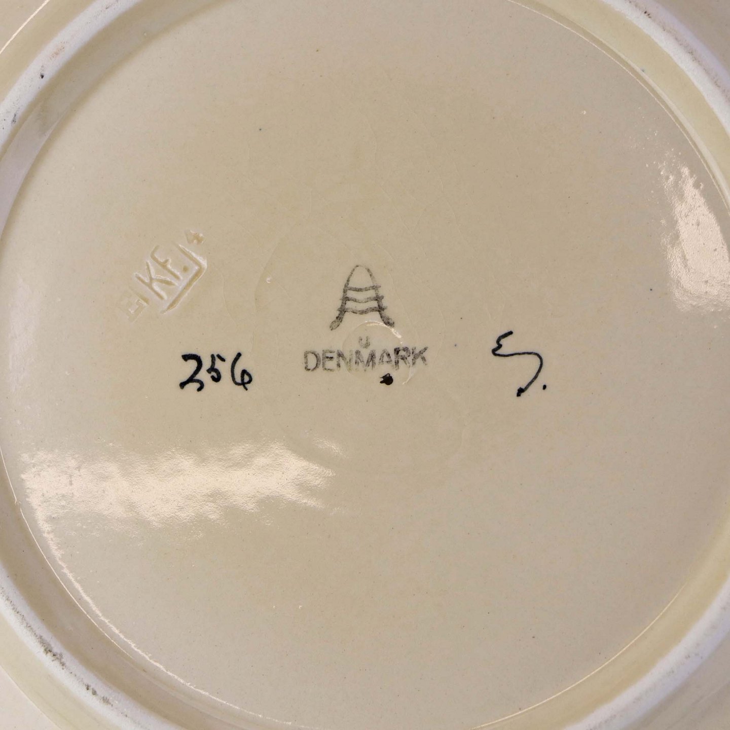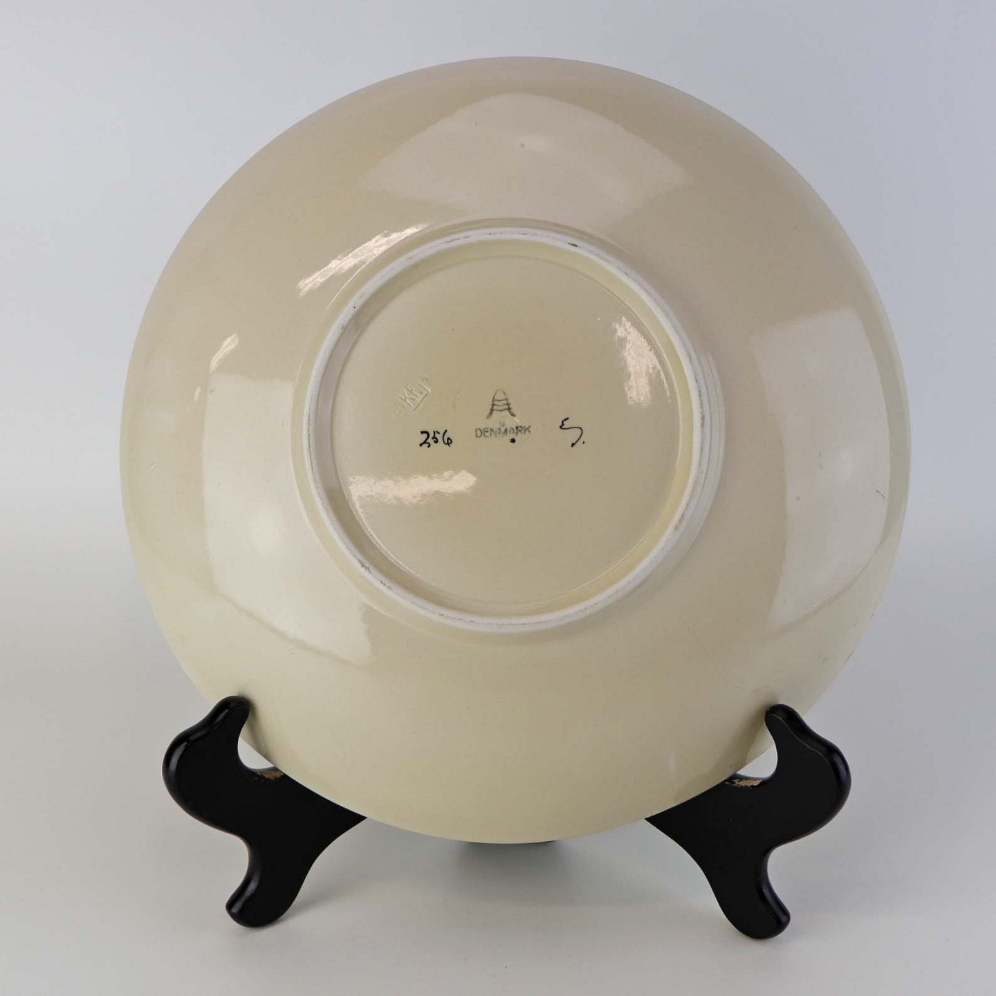 Rundt kagefad i fajance fra stellet Dragsholm fremstillet i perioden 1934-1965. Nr 256Formgiver Thorkild Olsen