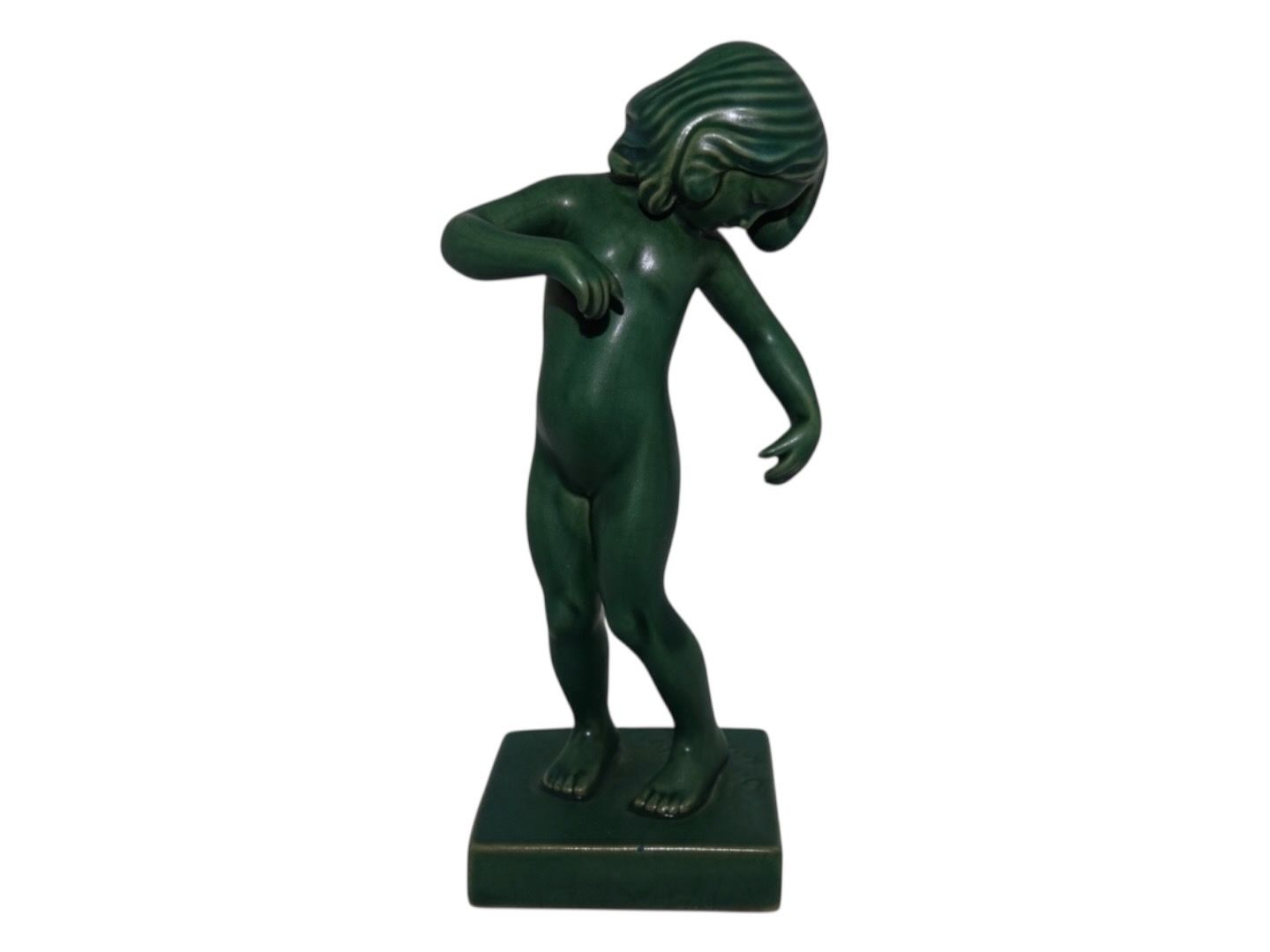 Ipsen keramik figur, pige kaldet Venus Kalipygos af Kai Nielsen i grøn udgave.Dekorationsnummer 888.