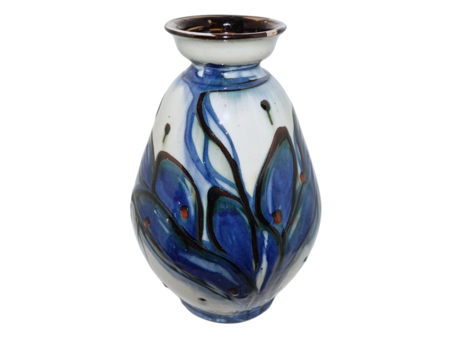 Kähler keramik, større vase med blå og hvid dekoration.Vasen er produceret i starten af 1900 tallet.