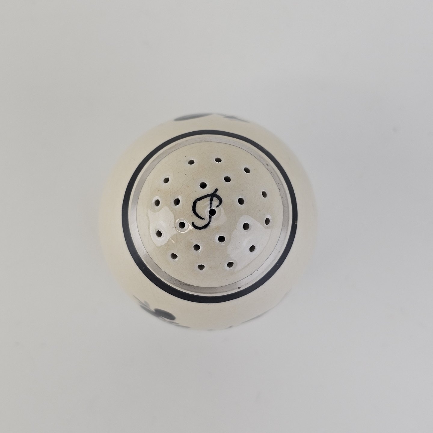 Peberbøsse i fajance fra stellet Dragsholm fremstillet i perioden 1934-1965.Formgiver Thorkild Olsen