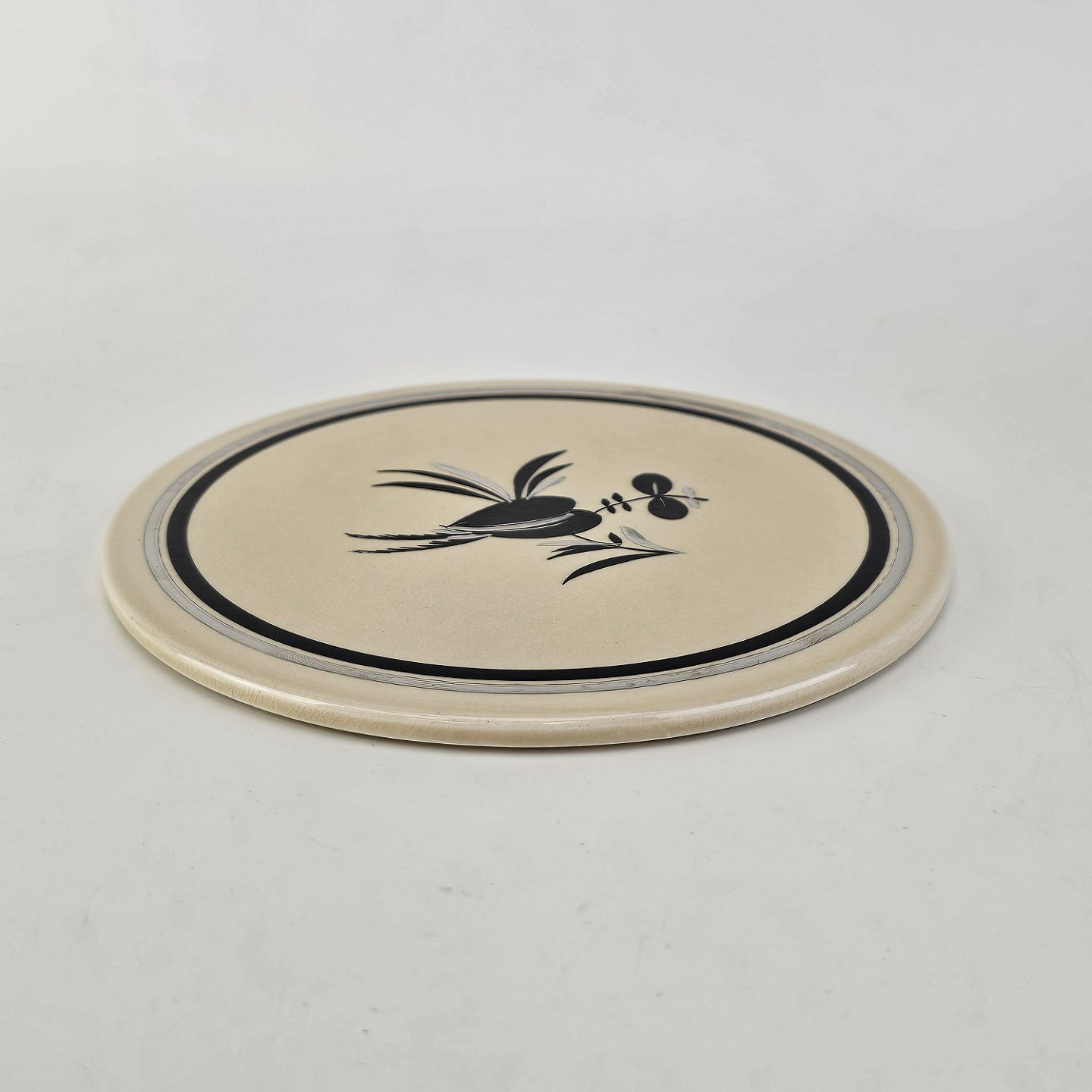 Smørbræt i fajance fra stellet Dragsholm fremstillet i perioden 1934-1965.Formgiver Thorkild Olsen