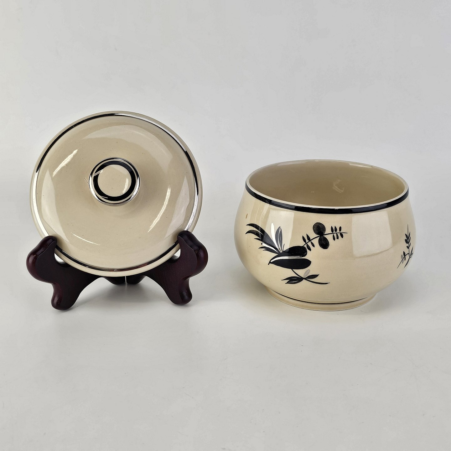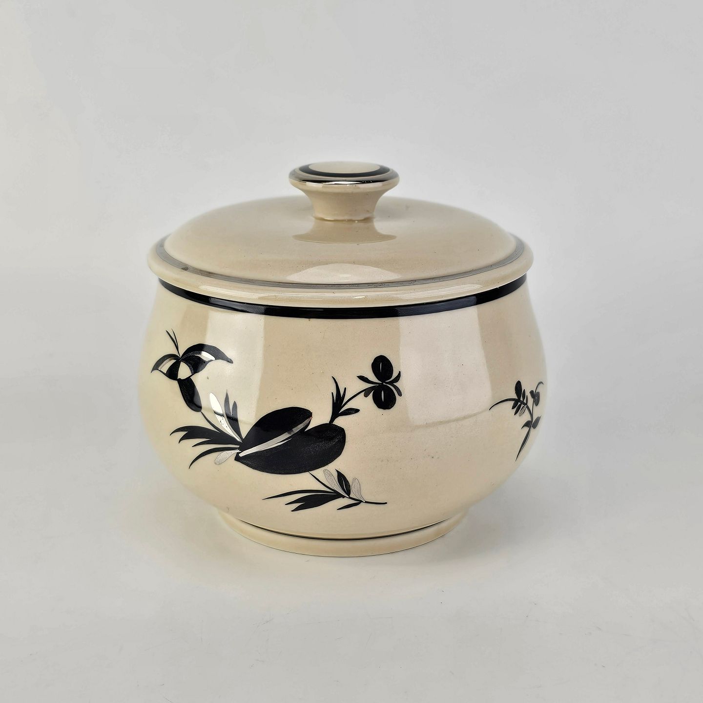 Sukkerskål med låg i fajance fra stellet Dragsholm fremstillet i perioden 1934-1965.Nr. 2057