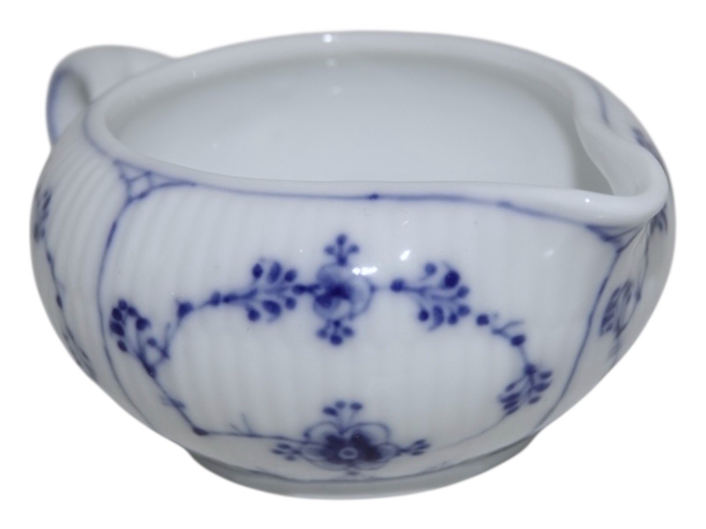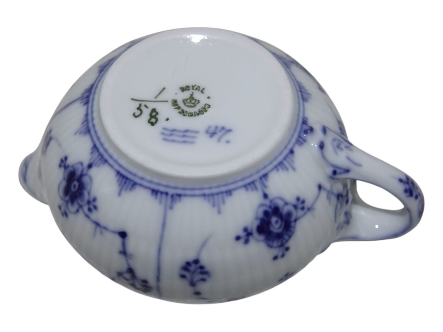 Royal Copenhagen Musselmalet Riflet, sjælden flødekande.Af fabriksmærket ses det, at denne er produceret mellem 1898 og 1923.