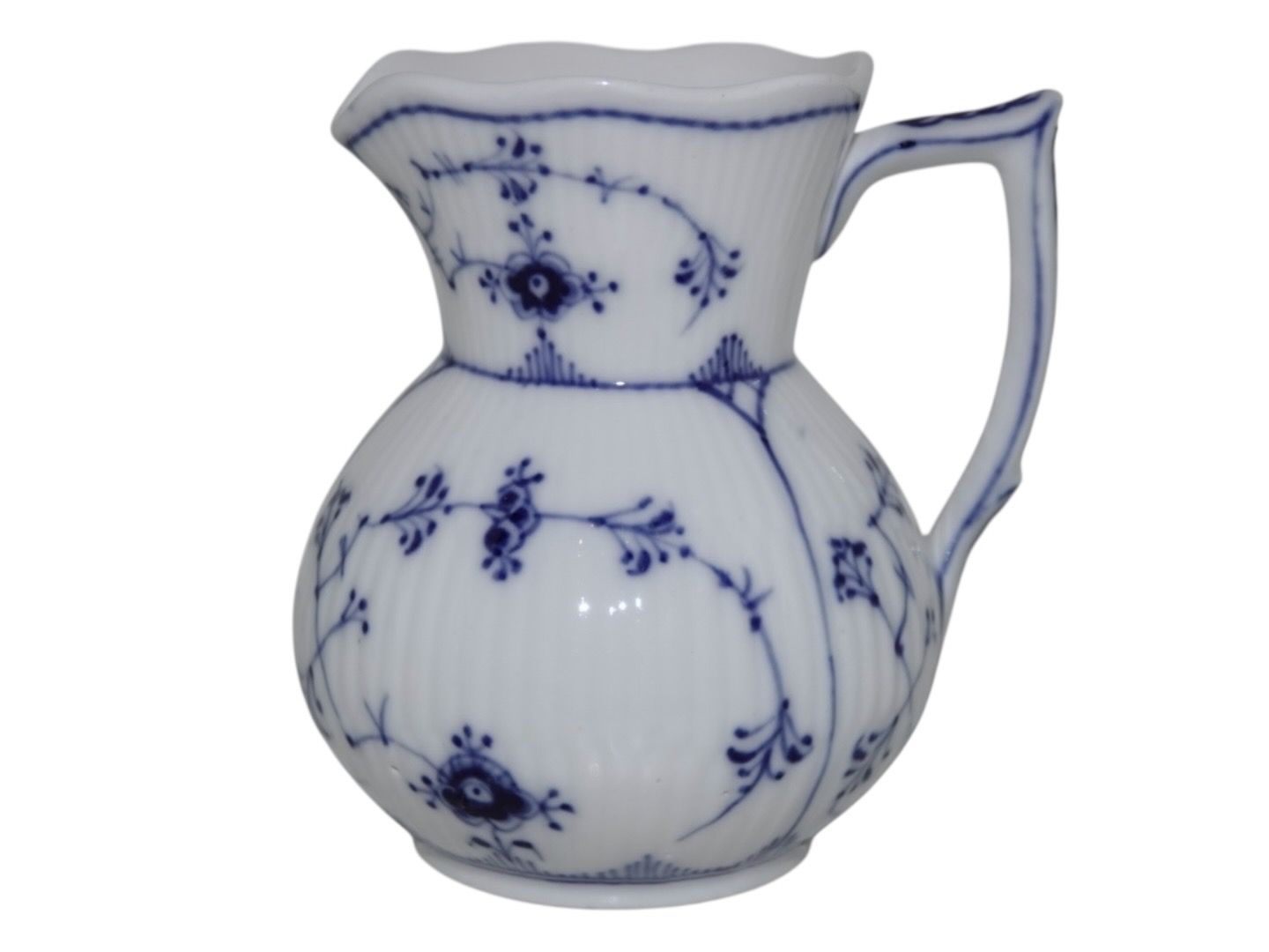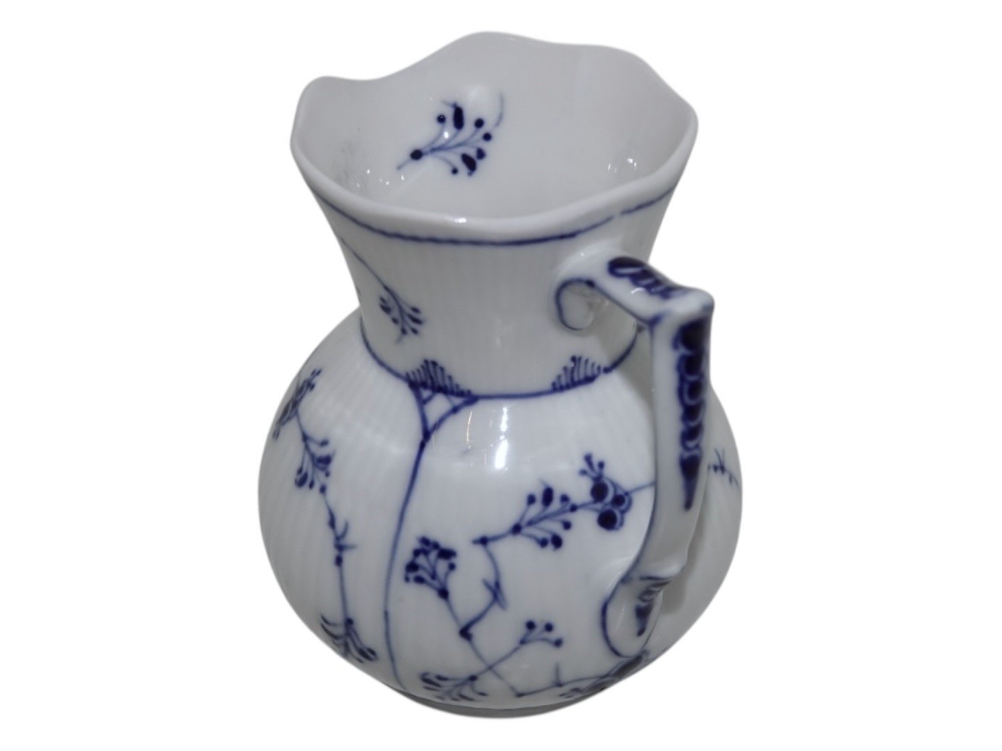Royal Copenhagen Musselmalet Riflet, sjælden flødekande.Af fabriksmærket ses det, at denne er produceret mellem 1898 og 1923.