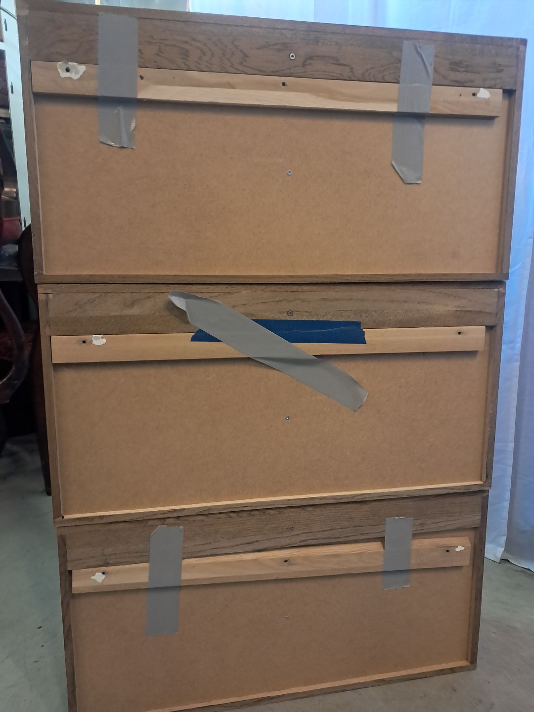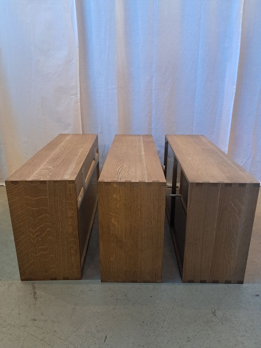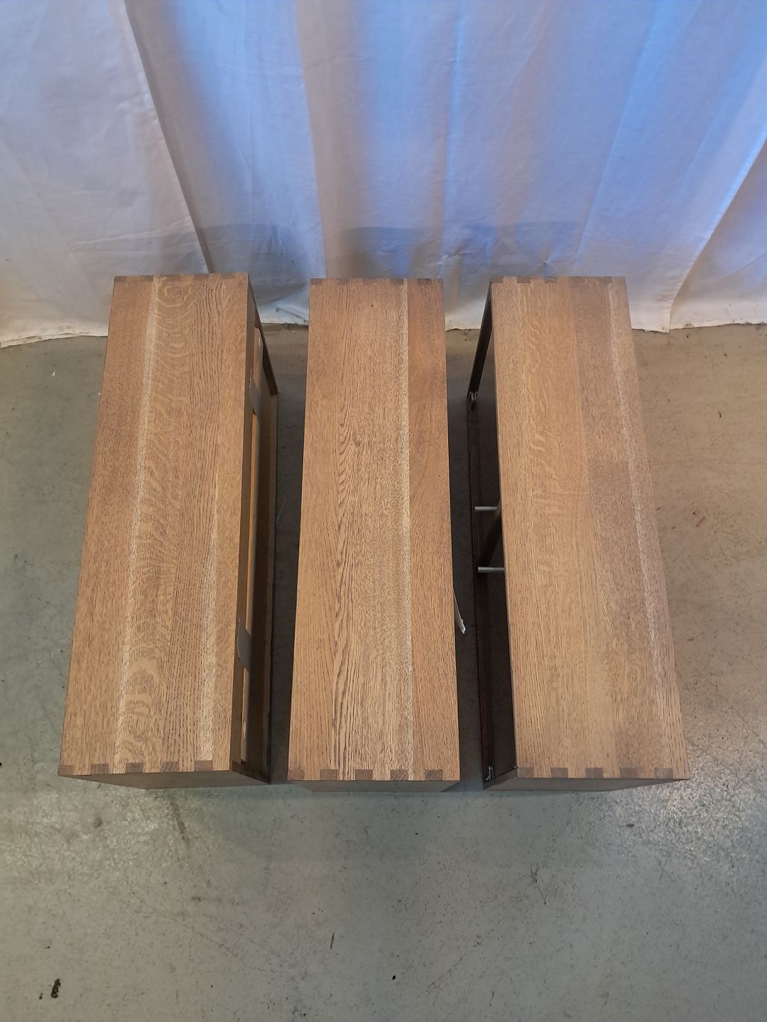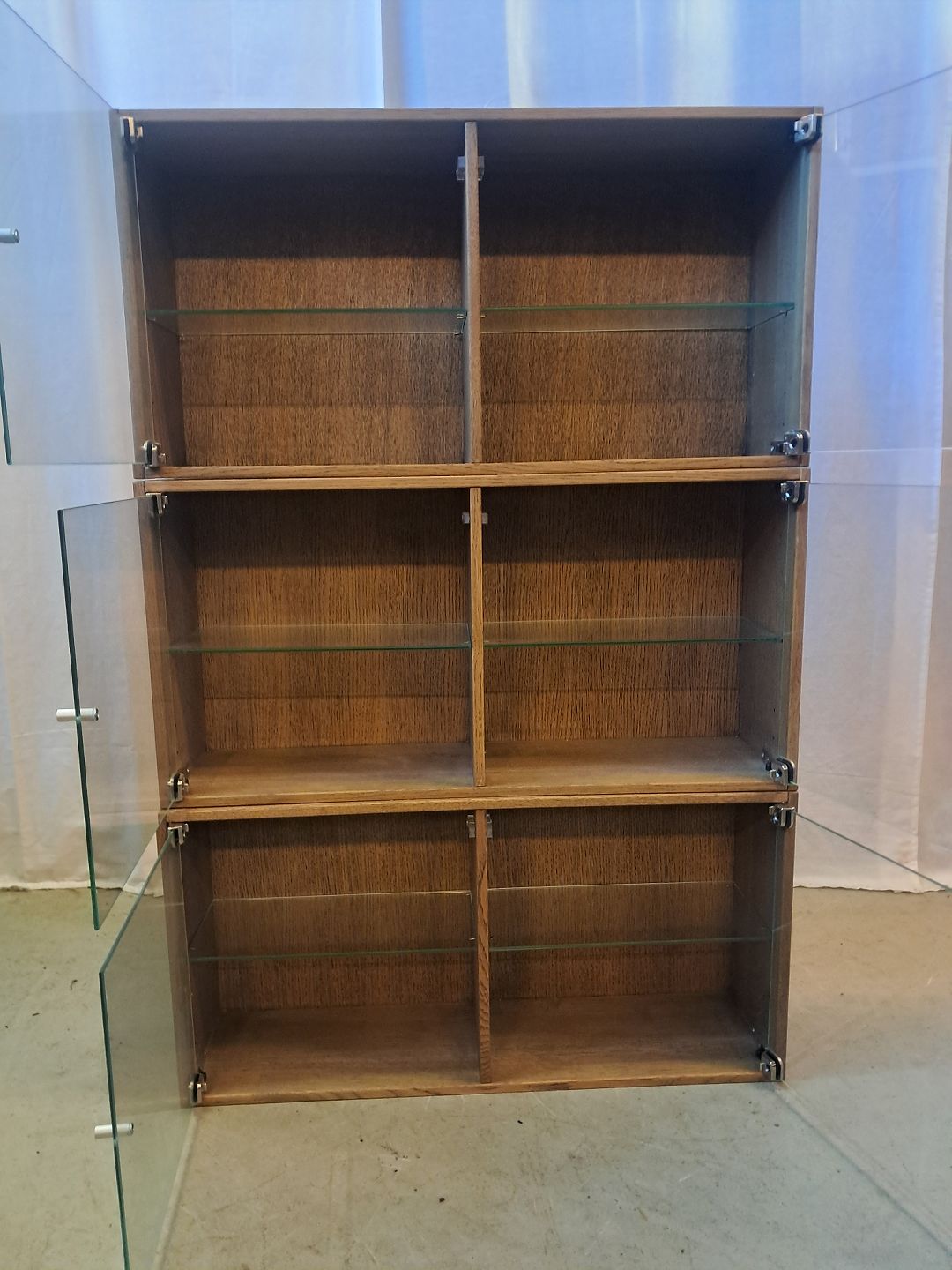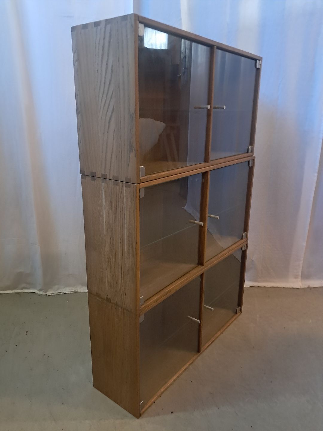 3 Vitrineskabe i massivt egetræ, fra 2000erne.De har små brugsspor og der medfølger ophæng.