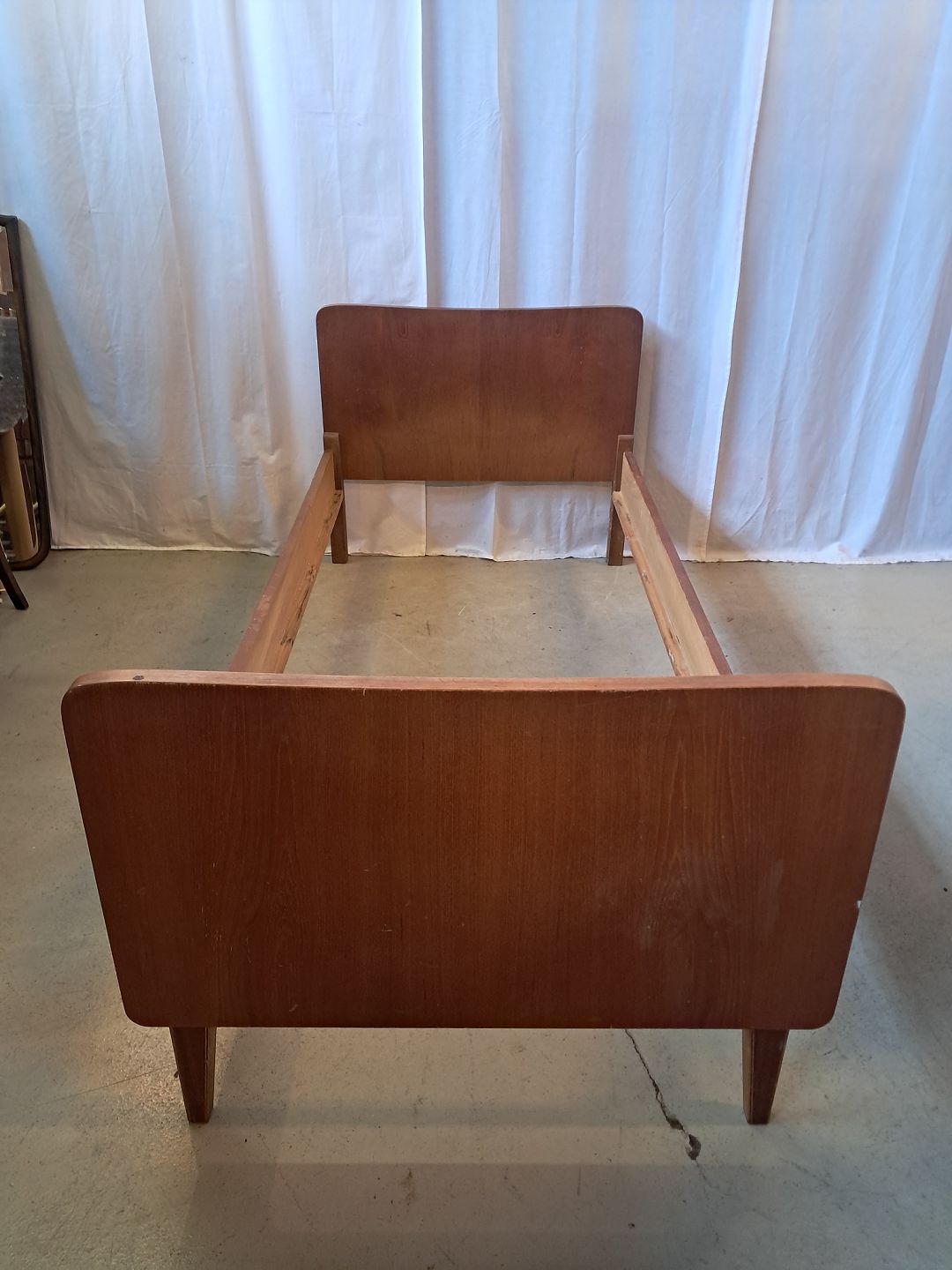 Seng i fineret teaktræ, fra 1960erne.