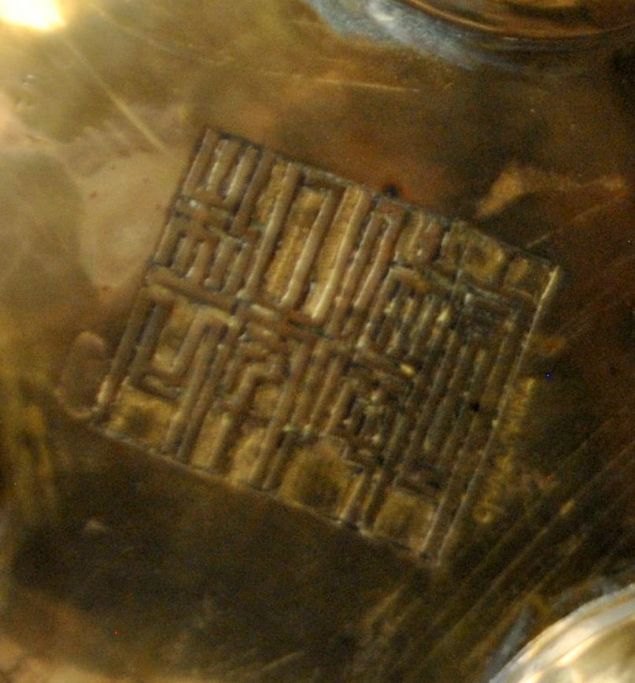 Kinesisk røgelseskrukke i bronze på tre ben, 19. årh. Med to ører; gennembrudt låg med dekoration i form af løve. På korpus dekoreret med drage og blomster. H.: 32 cm. B.: 25 cm. Stemplet.Emne nummer: 29042