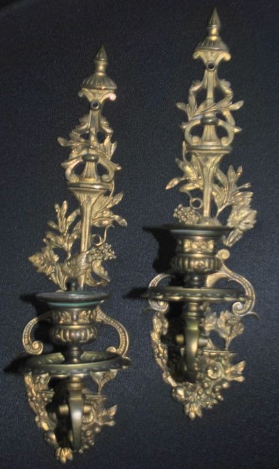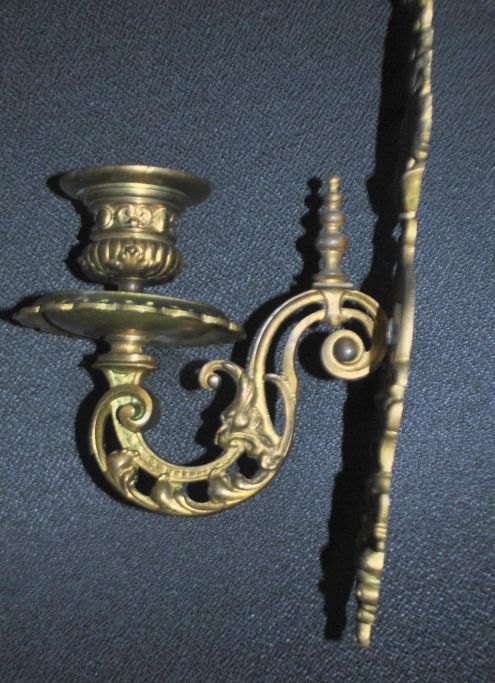 Par franske bronze vægstager, 19. årh. Stemplet.: 14. Højde: 34 cm.Emne nummer: 29043