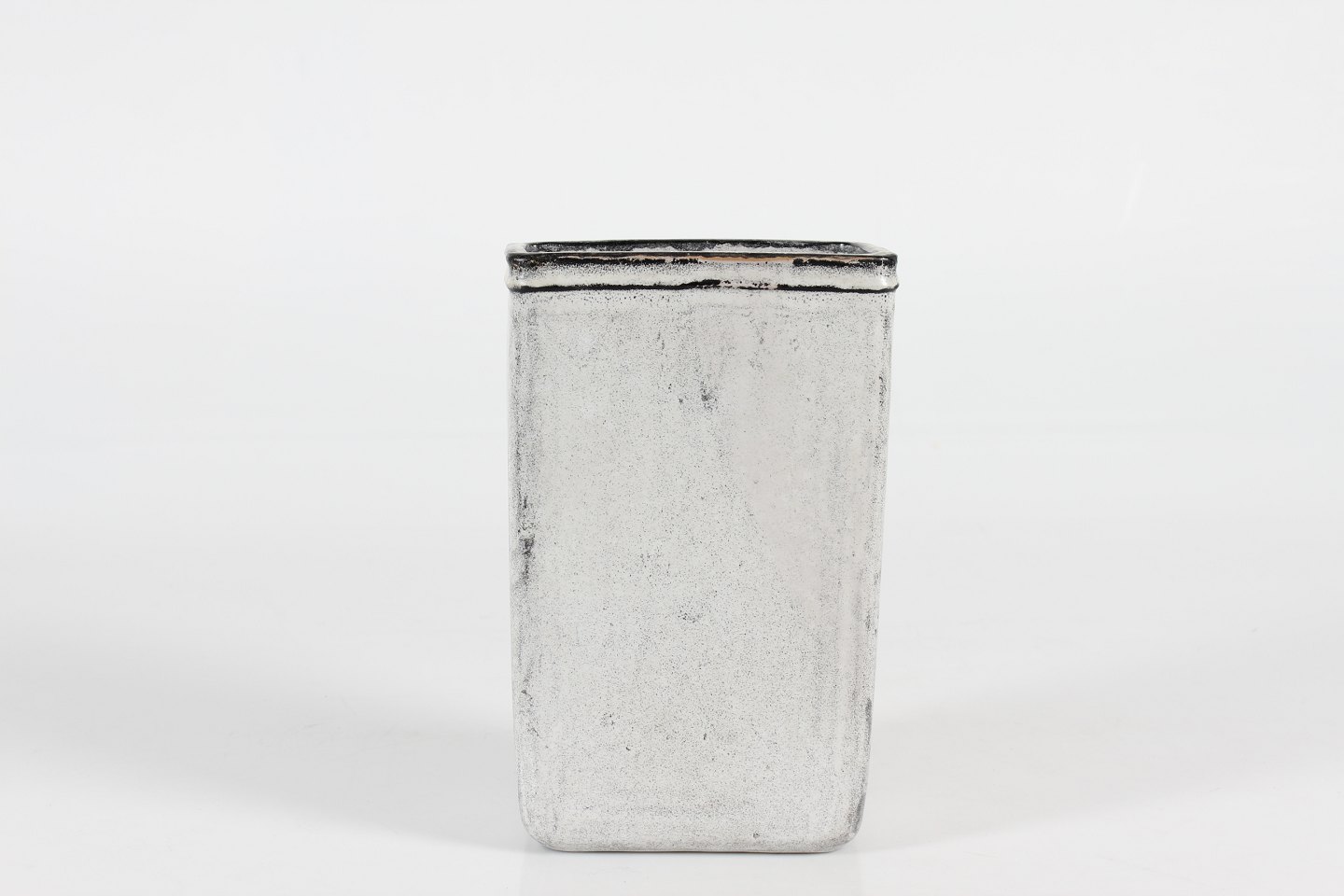 Høj rektangulær vase m/askegrå glasur