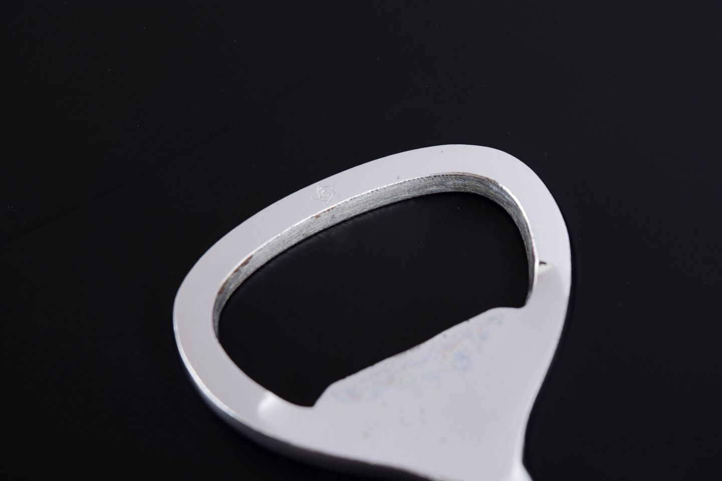 Evald Nielsen flaskeåbner. Model nummer 3.Art deco flaskeåbner i tretårnet sølv og rustfrit stål. Model nummer 3 med enkel, geometrisk skaftform typisk for perioden. Fremstillet hos Evald Nielsen.