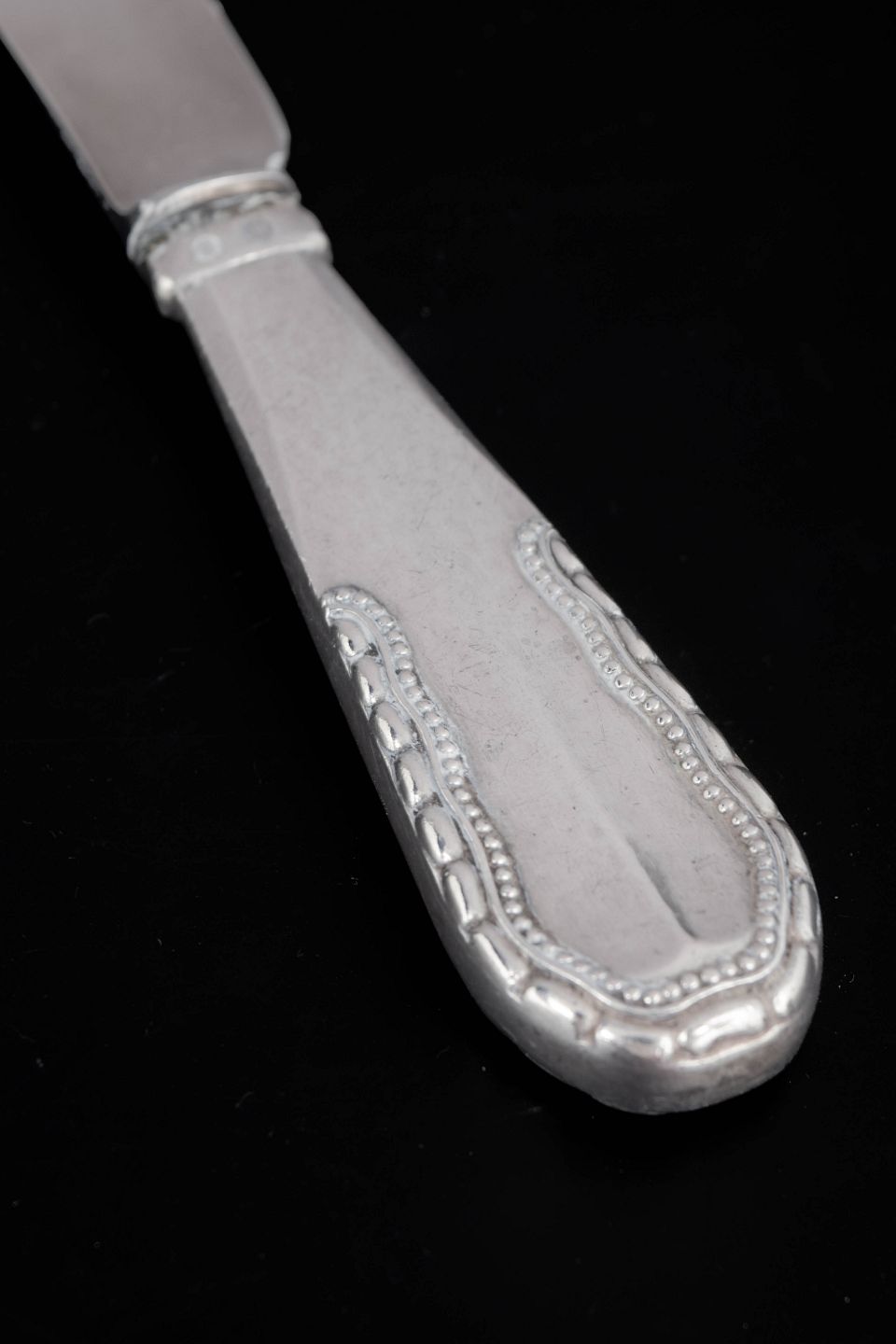 Georg Jensen, frugtkniv Nordisk.Elegant frugtkniv i rustfrit stål og 830 sølv med skaft i mønstret Nordisk. Kniven har et slankt blad i rustfrit stål og et karakteristisk sølvskaft med blødt afrundede former og dekorativ rand. Fremstillet hos Georg Jensen i 1929 og mærket med tretårnet sølvstempel.