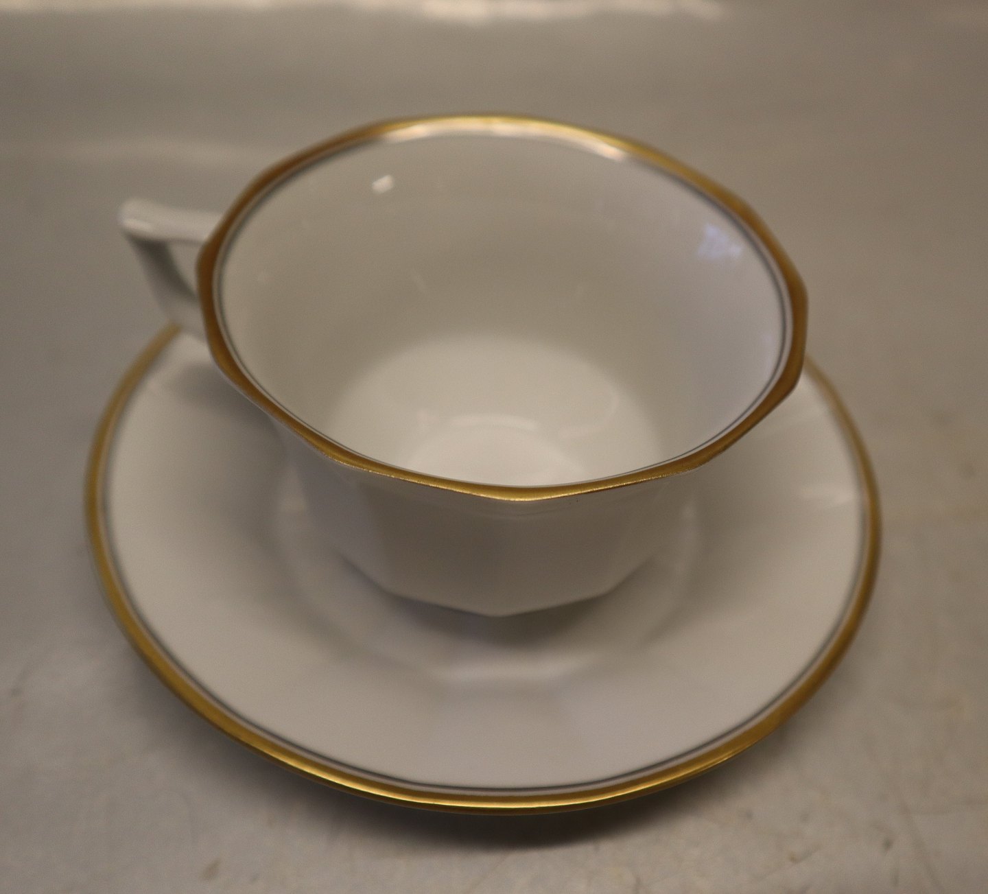 12 sæt på lager 1535 guld og grå kant8608-1535 Kop & underkop ca 13.5 cm (072-073) Rød ekstra kant Kgl. hvid kantet stel med dobbelt guldkant fra Royal Copenhagen I hel og fin stand