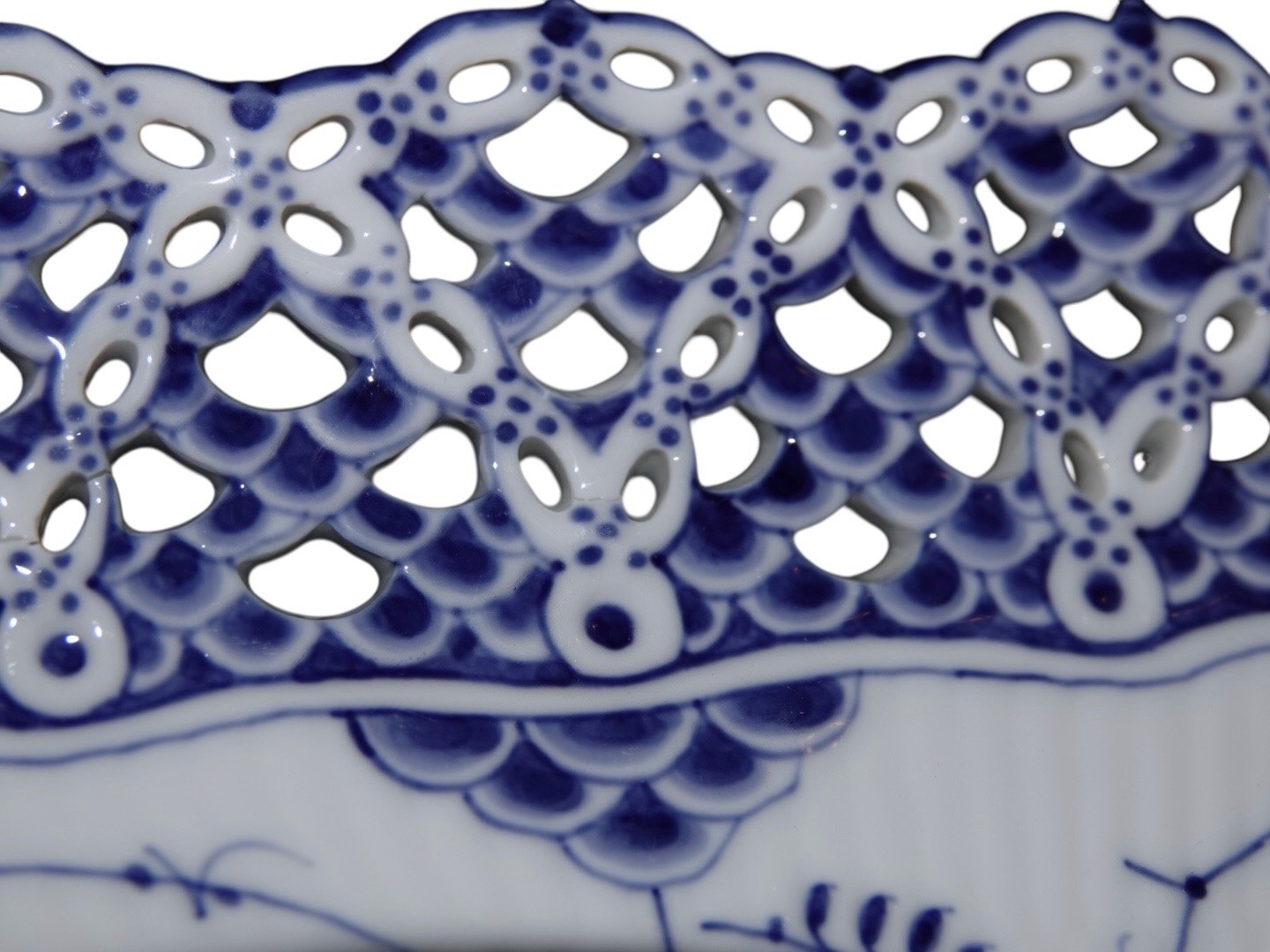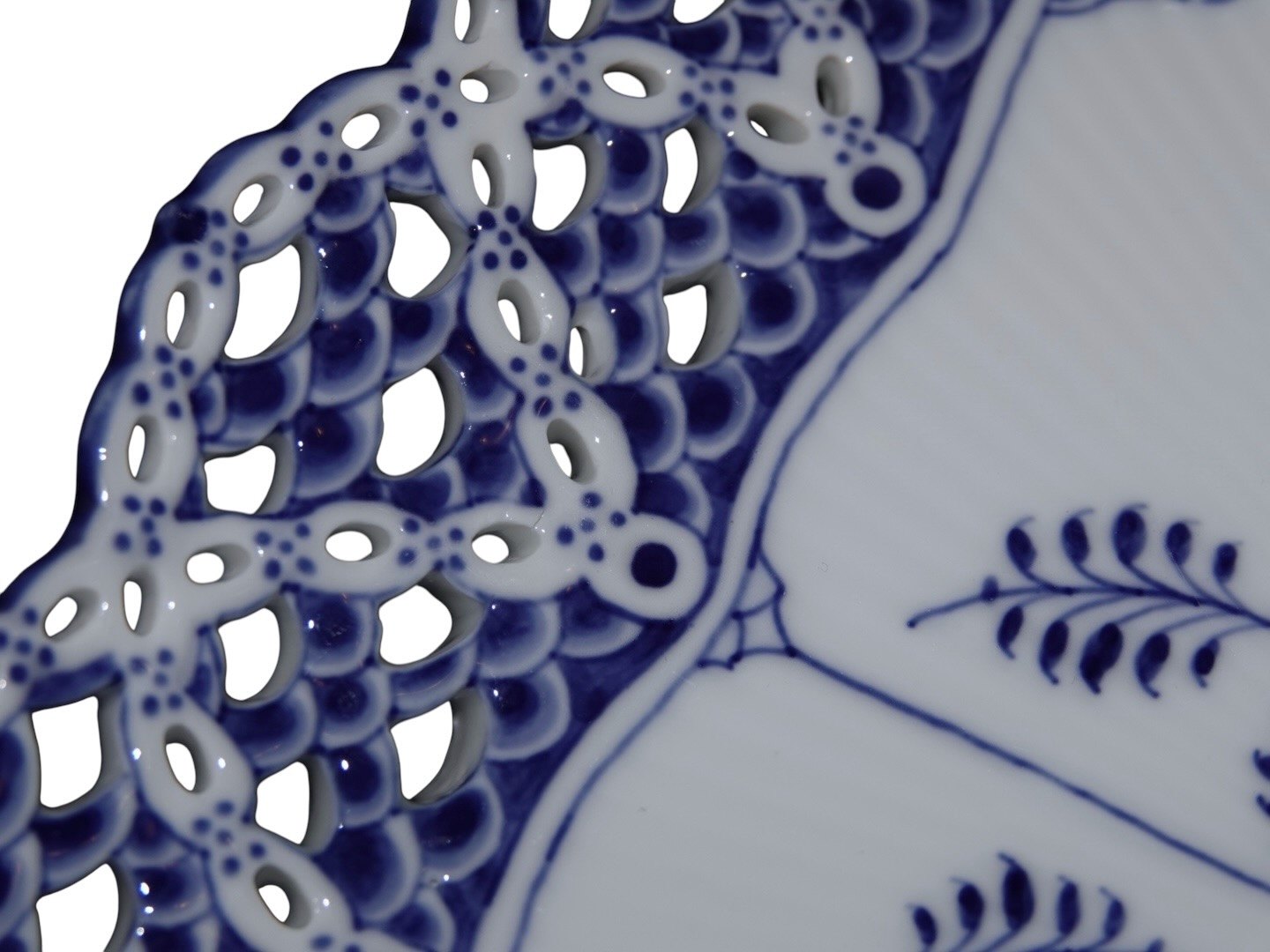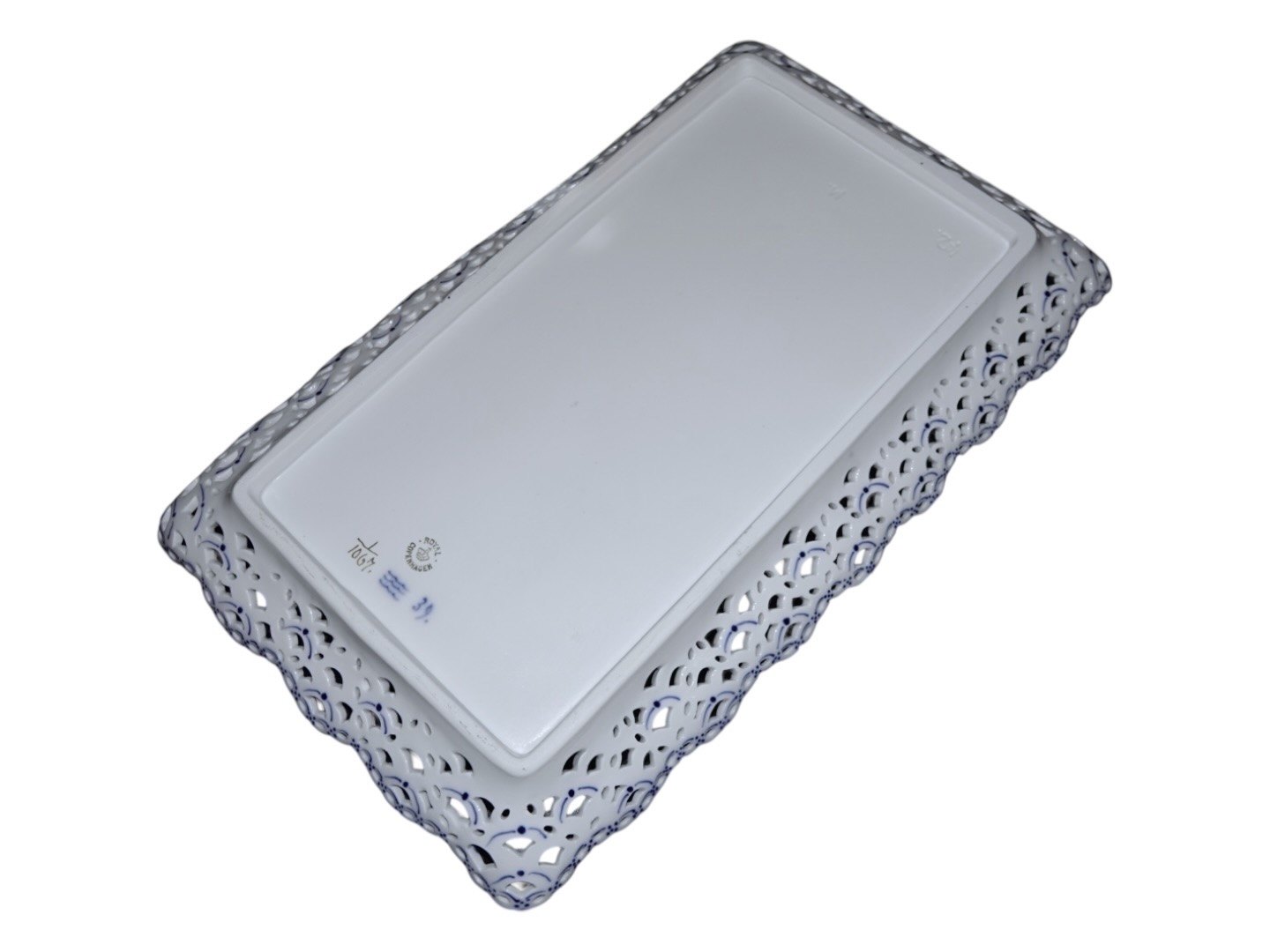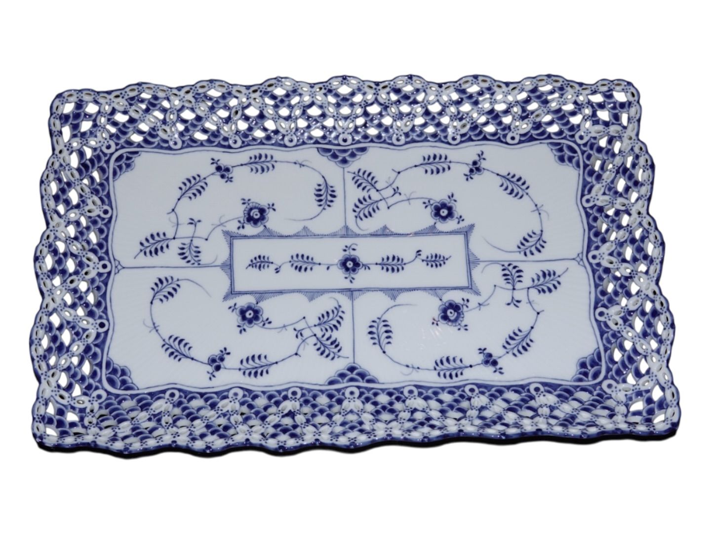 Royal Copenhagen Musselmalet Helblonde, stort og meget sjældent isfad / bakke.Fabriksmærket viser, at denne er produceret mellem 1898 og 1923.