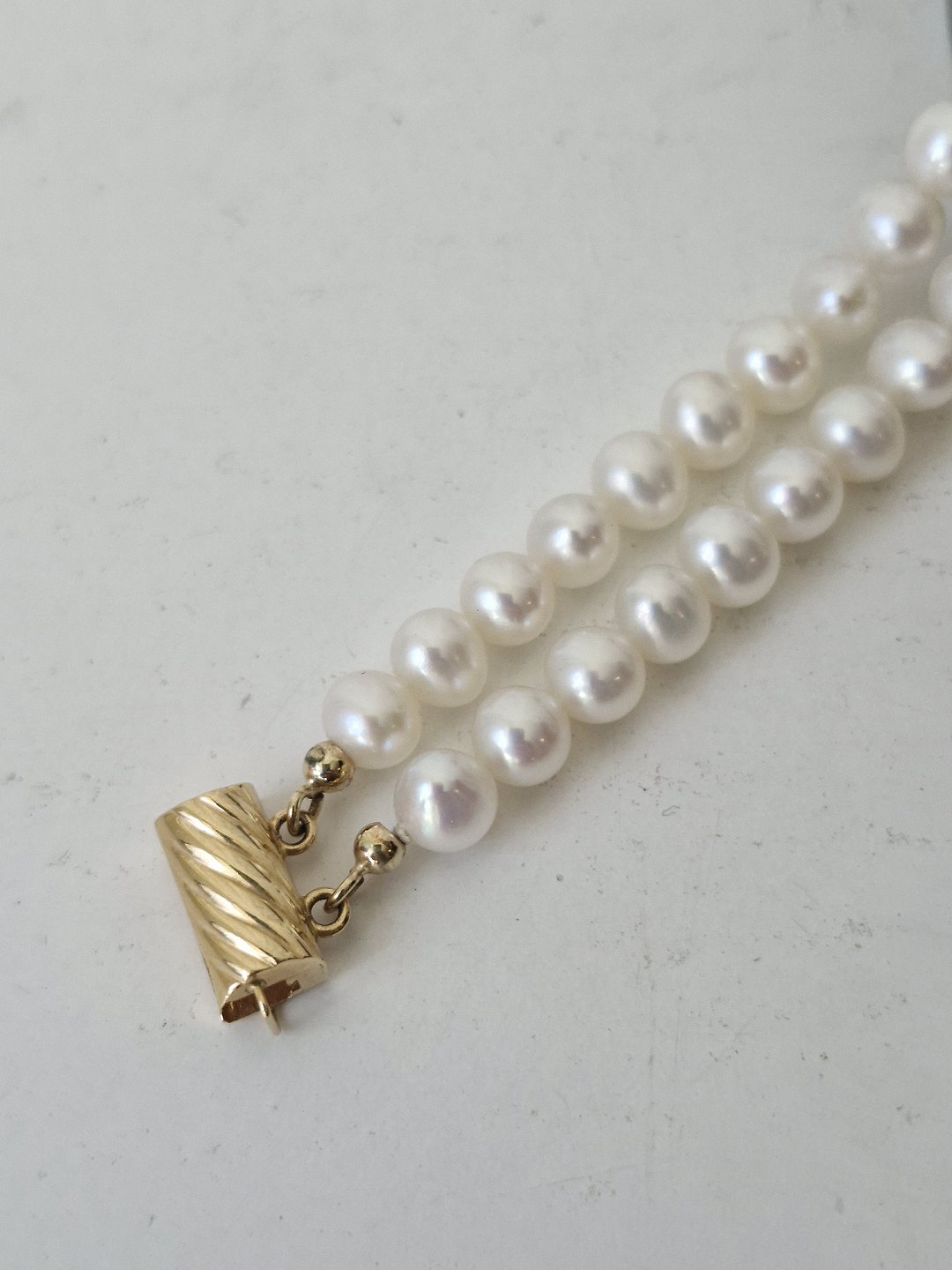 Meget smuk toradet kulturperle armbånd med lås i 18 kt guldStemplet 750