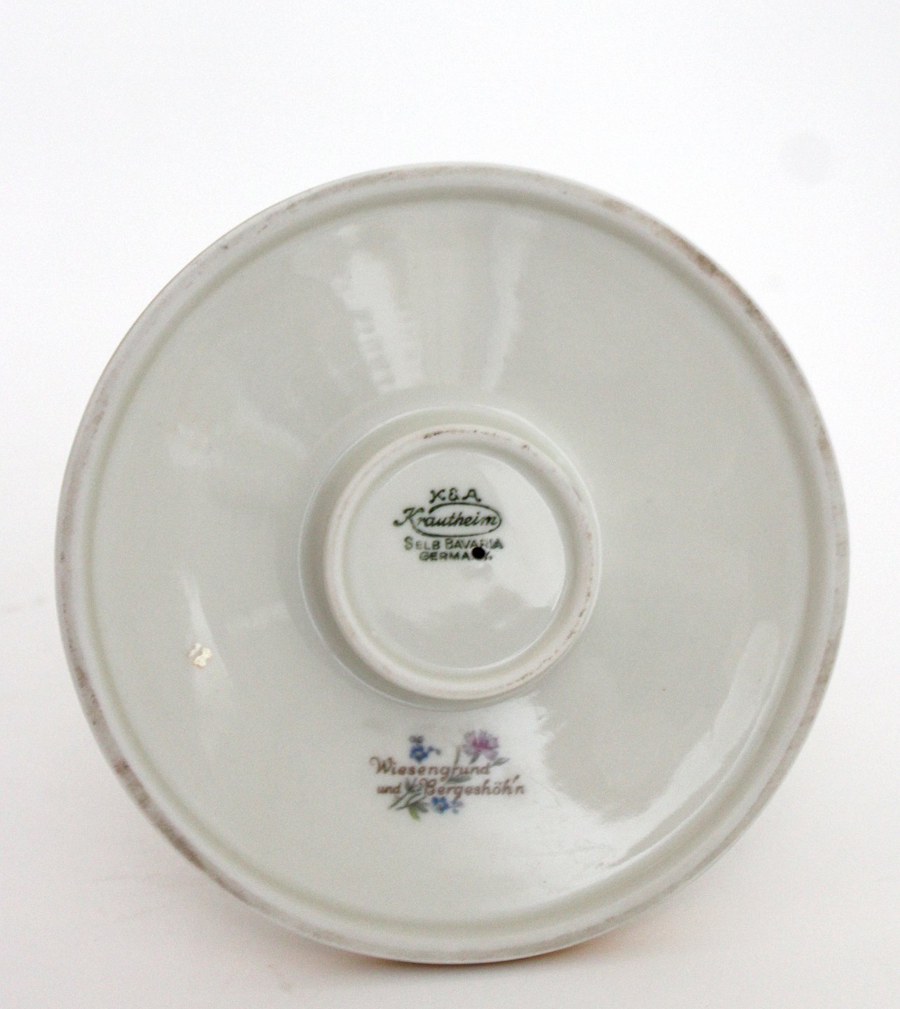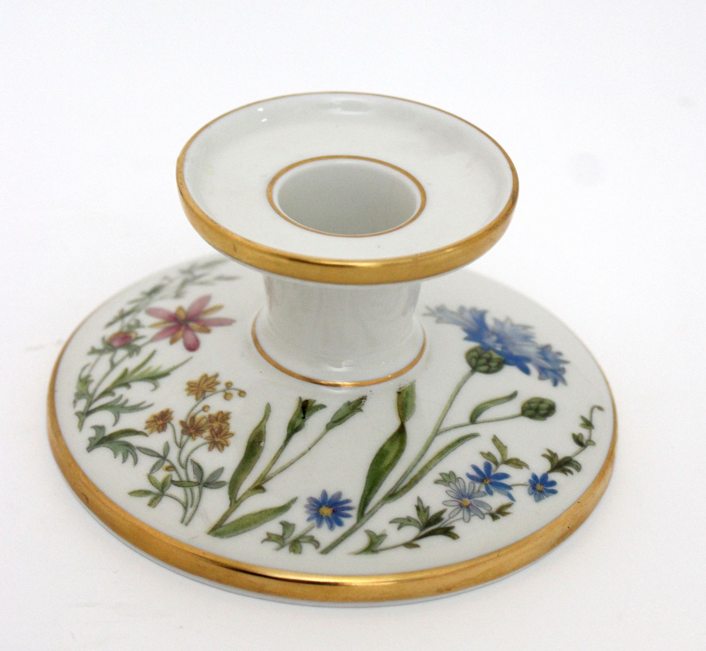 Krautheim, Selb Bavaria, Germany, Danmarks Flora cremet stel med guldkanter motiv Danmarks flora flere forskellige motiver.Lysestage. Højde 5,5 cm. Diameter 11,5 cm. Pris: 150 kr. stk. Lager:1
