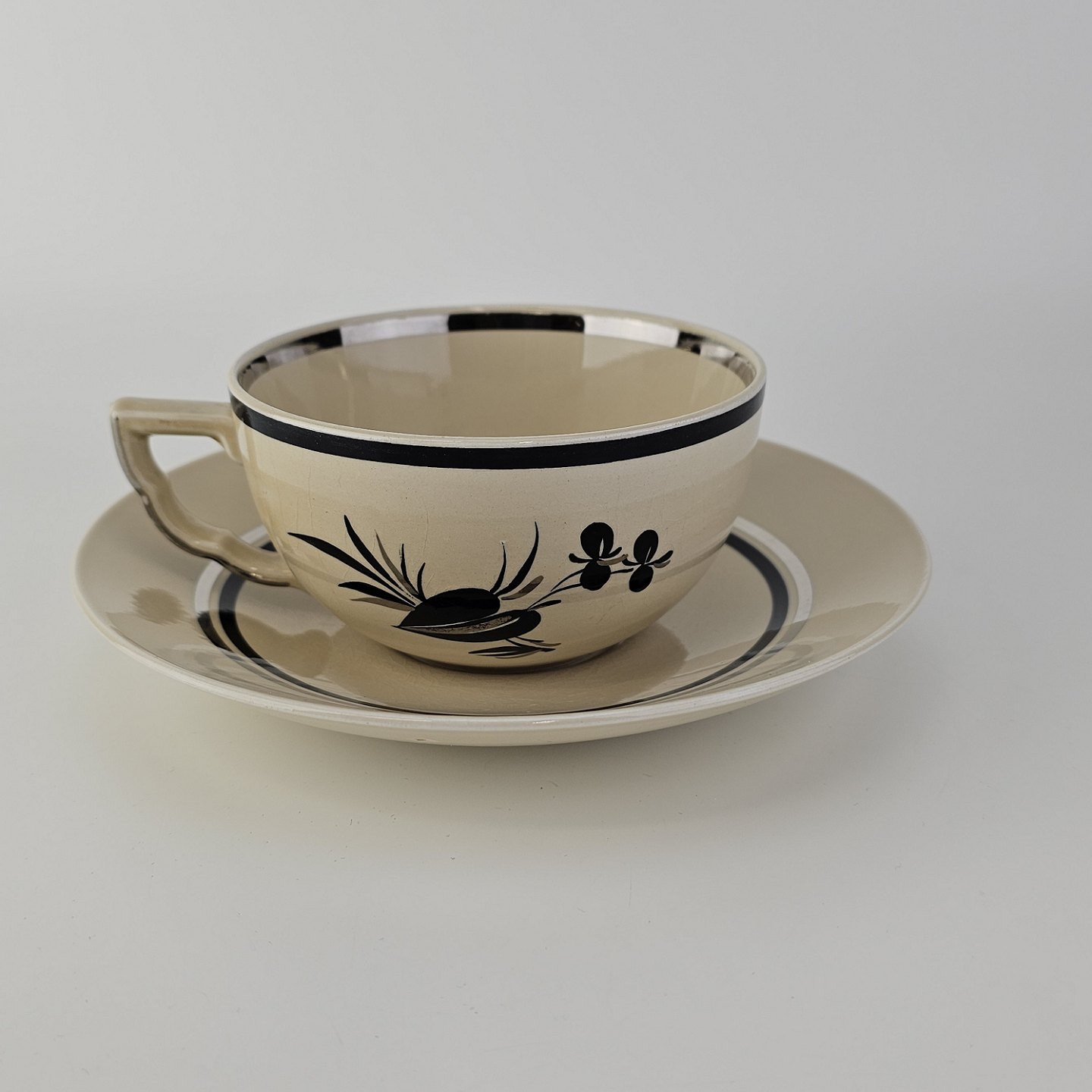 Tekop med underkop i fajance fra stellet Dragsholm fremstillet i perioden 1934-1965.