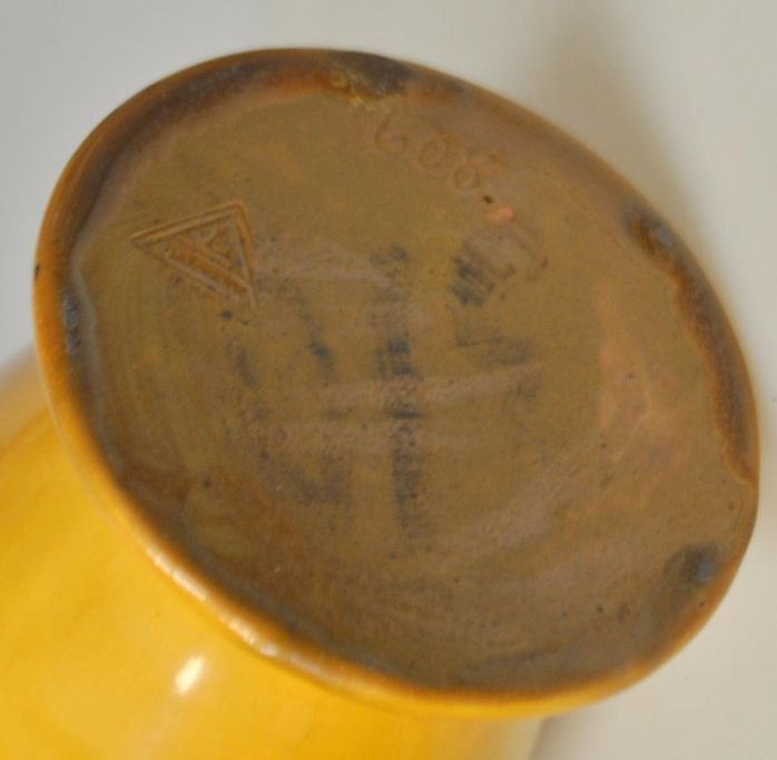 Keramisk vase, Annashåb Lervarefabrik, 1930'erne. Egebjerg ved Horsens, Danmark. No. 608. Gul og brunglaseret. Stemplet. H.: 24,5 cm.Perfekt stand!