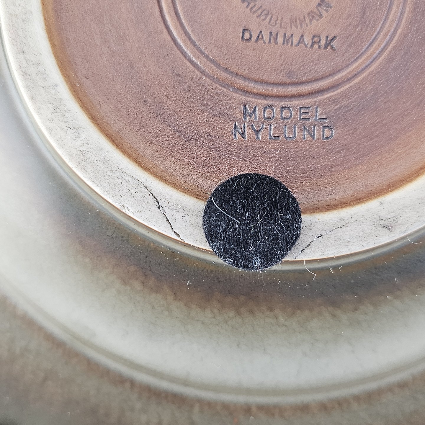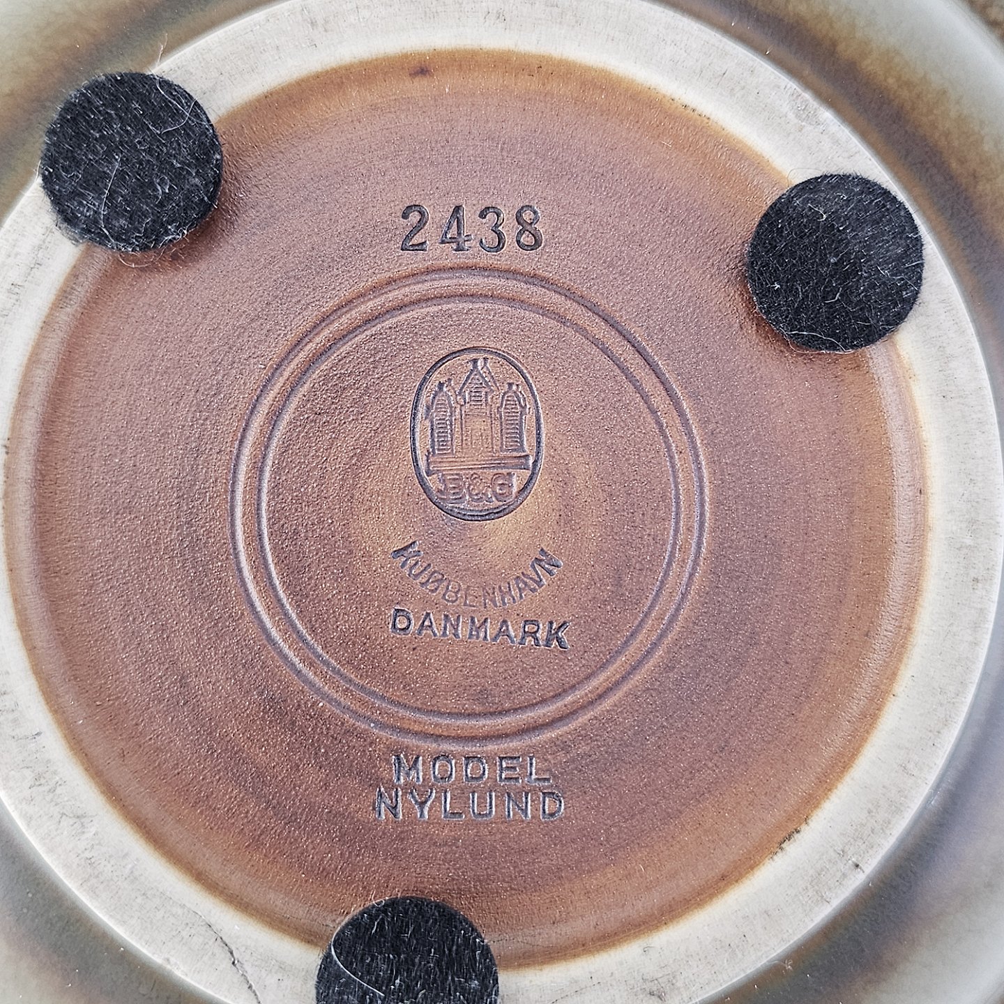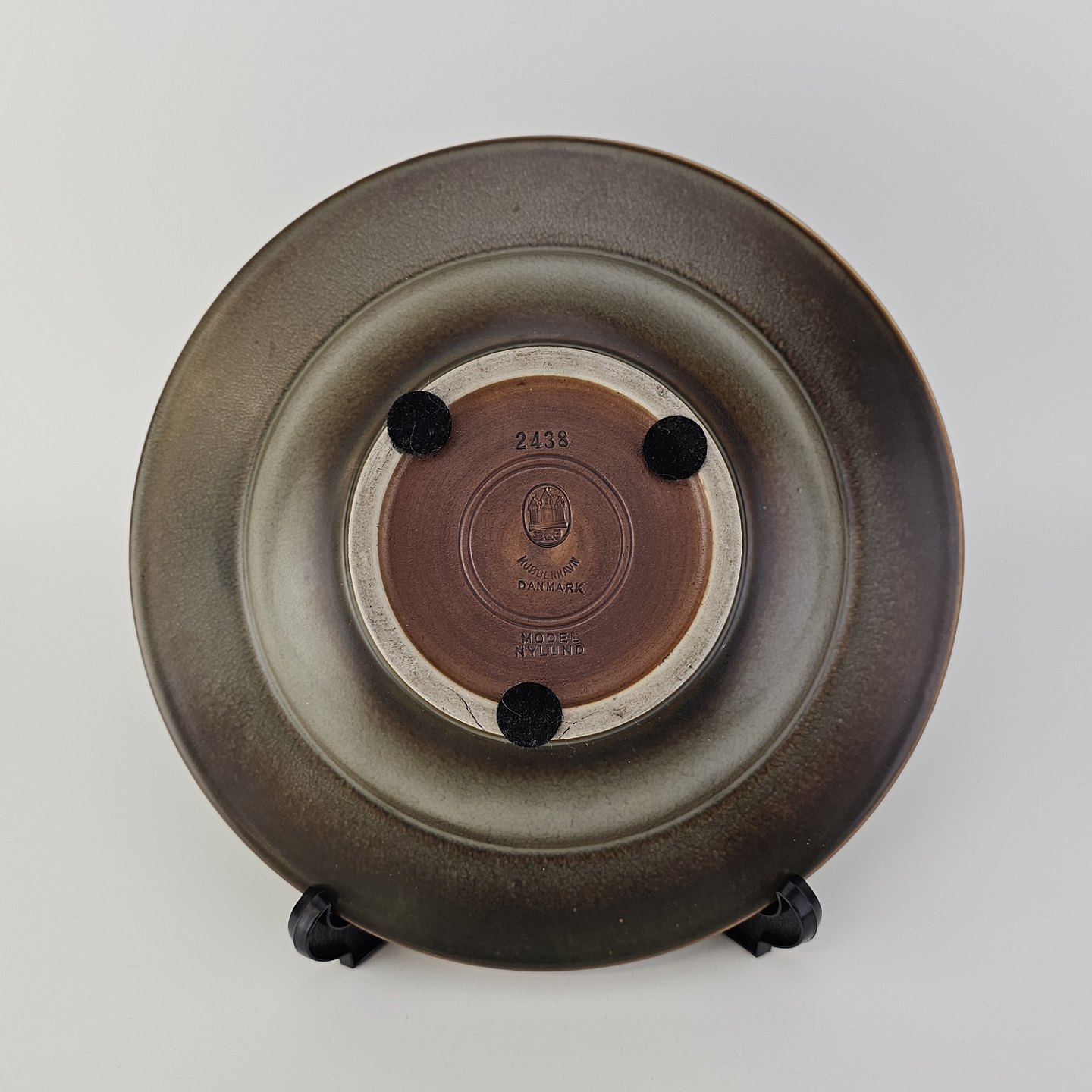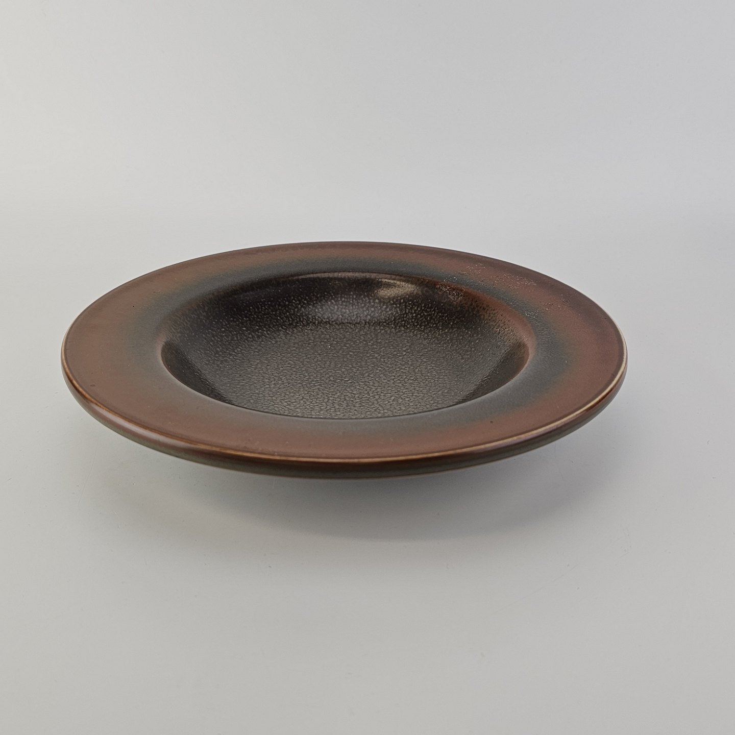 Rundt fad i stentøj med brun glasur. Nr. 2738, Model NylundProducent Bing & Grøndahl