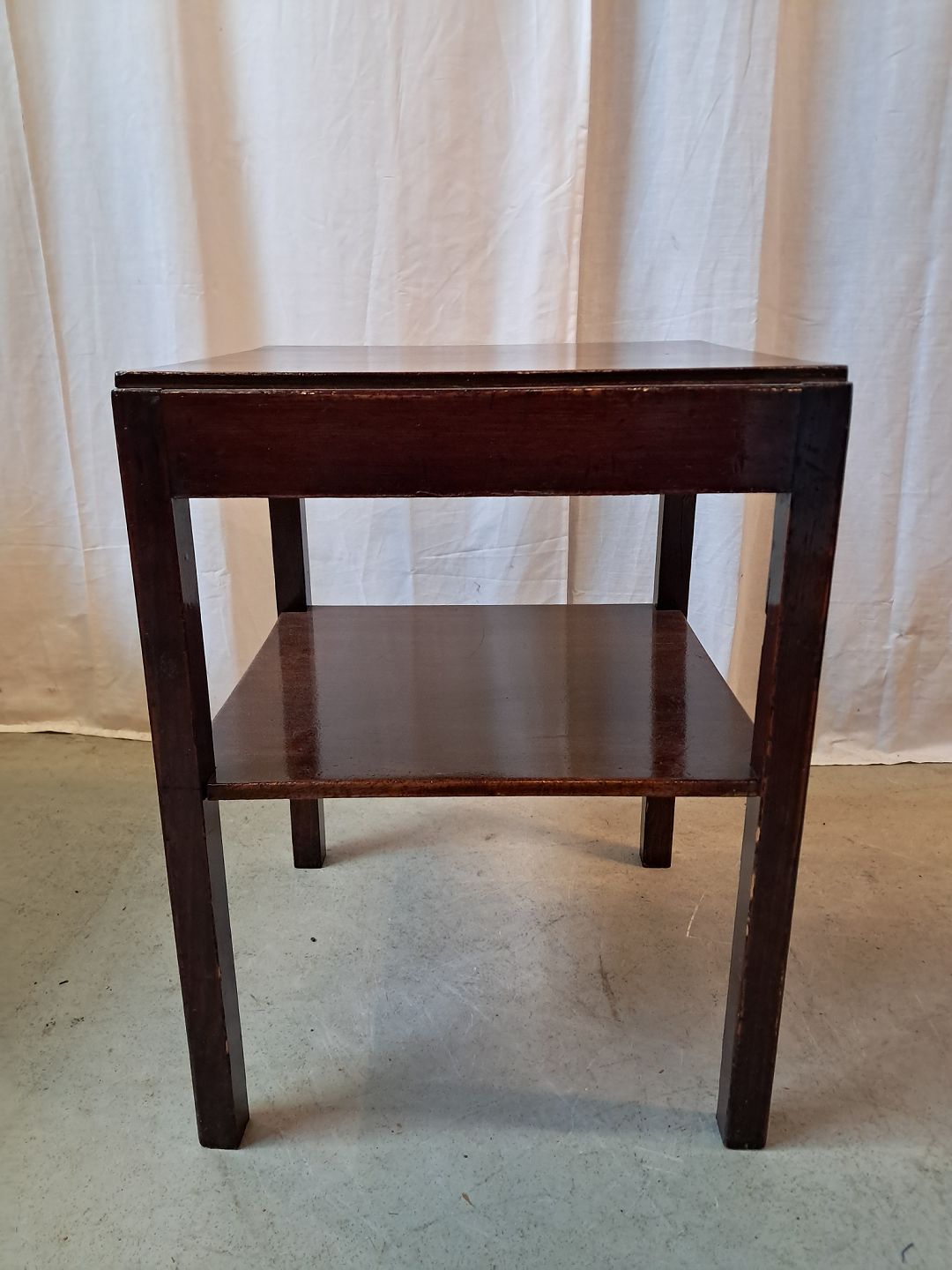Lampebord i lakeret og bejdset fyrretræ, fra 1950erne.Det har brugsspor.