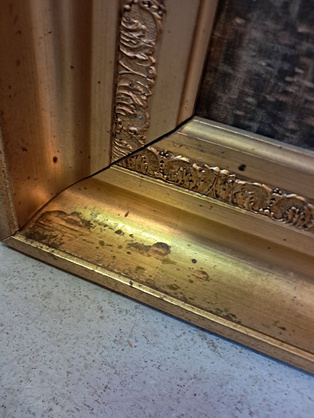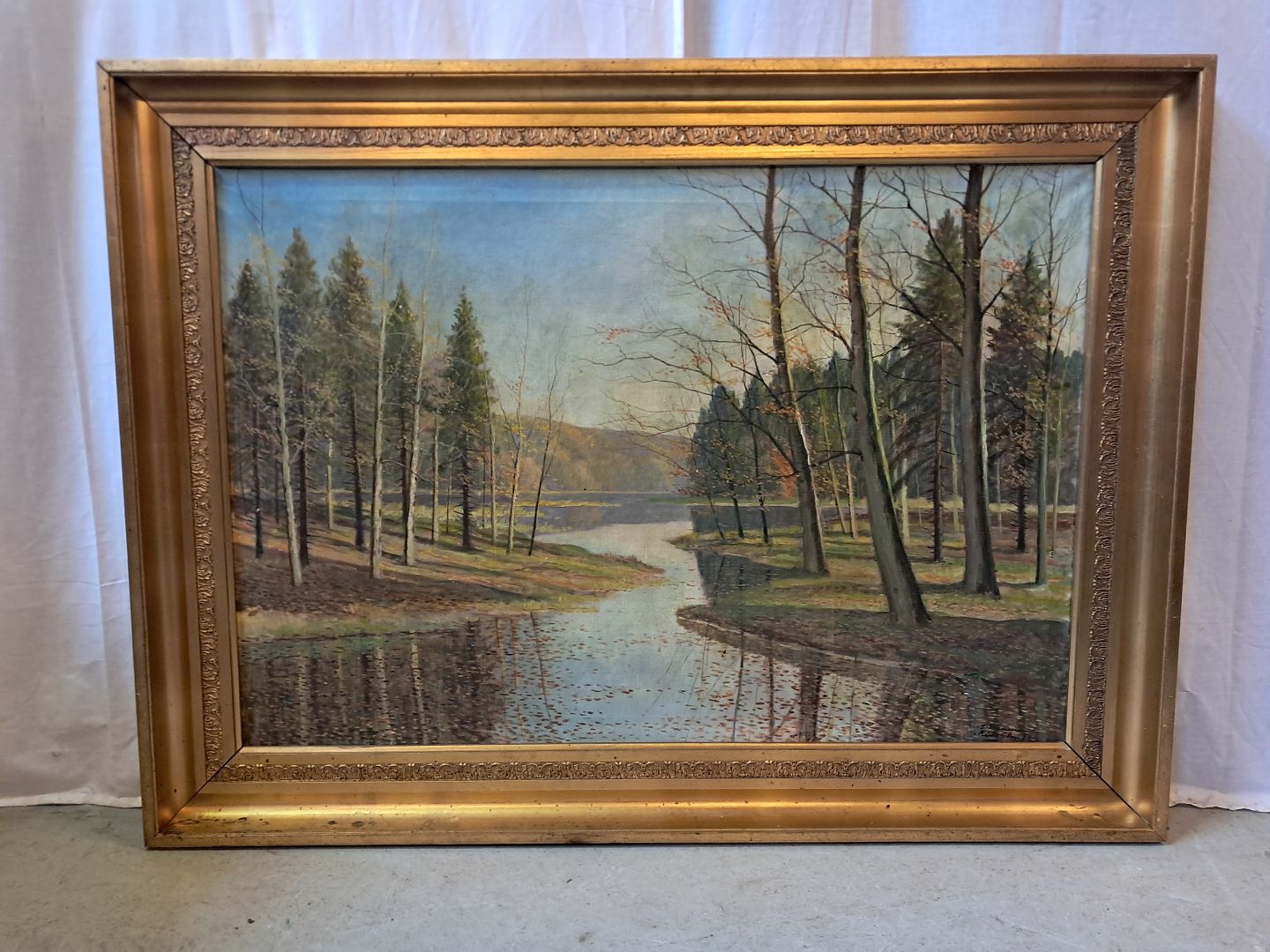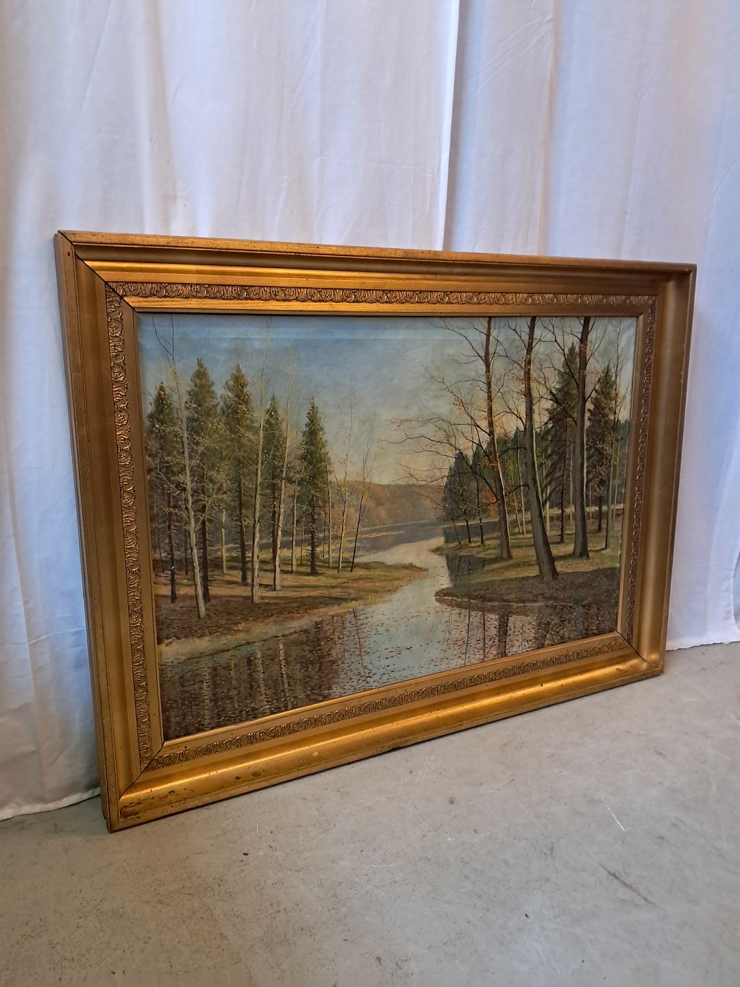 Maleri i guldmalet ramme, fra 1950erne.Det har brugsspor.