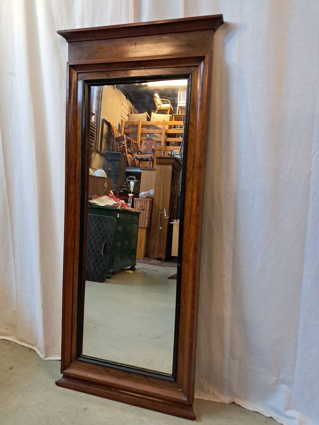 Spejl i fineret mahogni, fra 1910erne.Det har brugsspor.