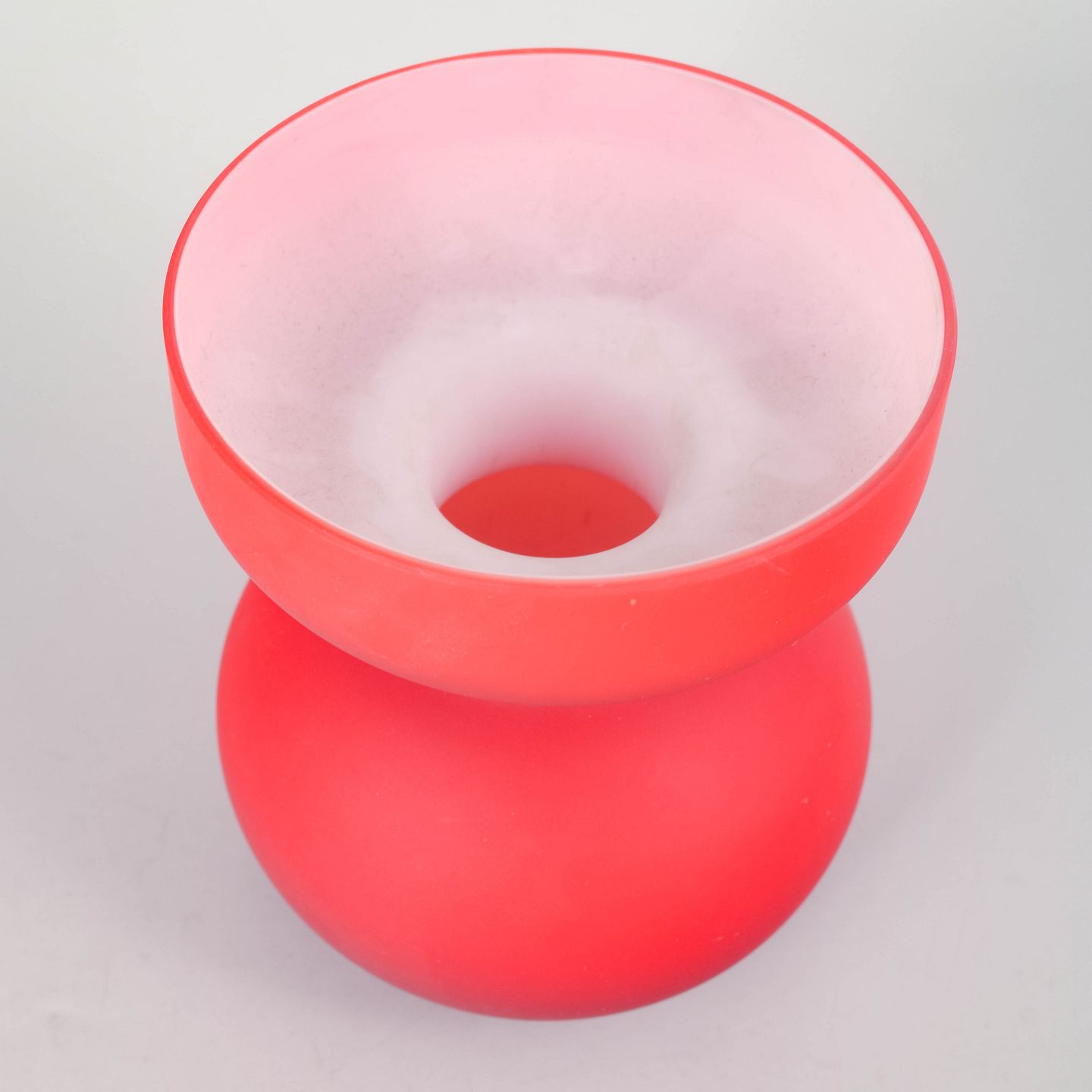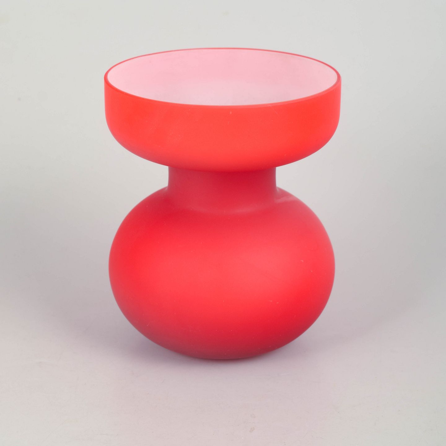 Carlo Moretti, Murano, vase.Kompakt kunstglasvase i matteret rødt glas med rund kugleformet krop og cylindrisk hals. Original mærkat “Moretti Carlo – Murano Italia”.