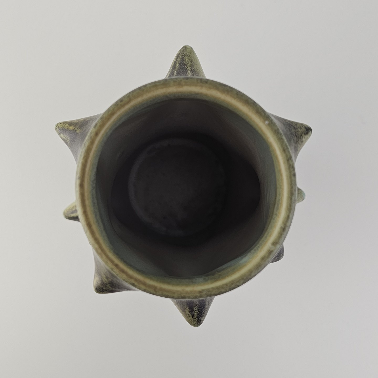 Vase i glaseret stentøj med motiv af en rosenthorn