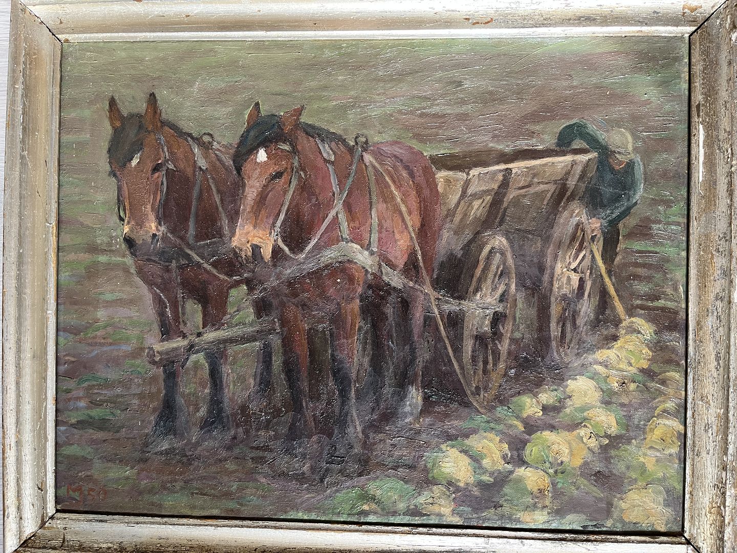Marius Jensen Hindevad (1885-1977):Kål høsten bringes i hus 1950.
