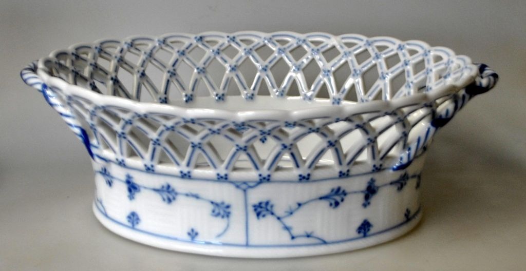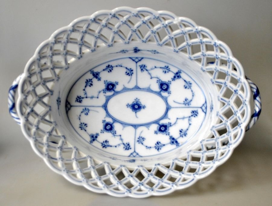 Royal Copenhagen helblonde frugtskål/jardiniere, 1057, 20. årh. København, Danmark. Stemplet. H.: 9,5 cm. L.: 28 cm. B.: 21 cm.1. sortering.