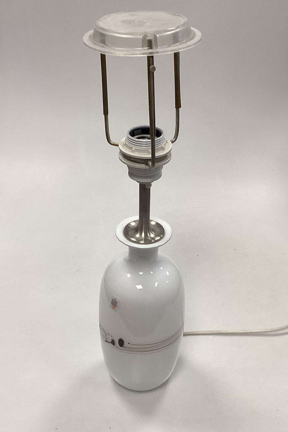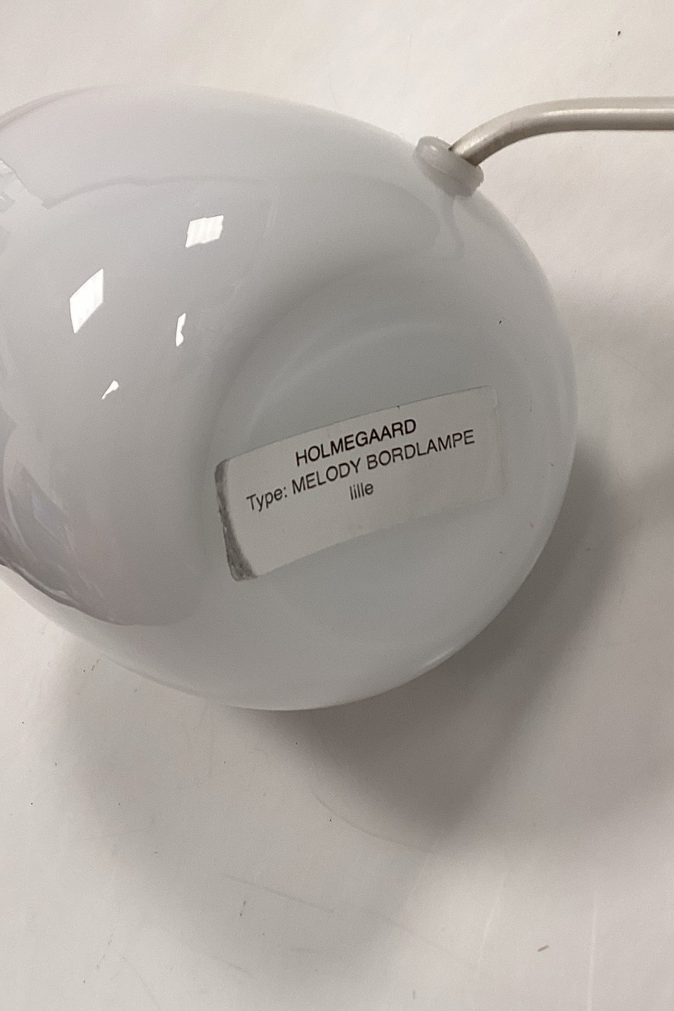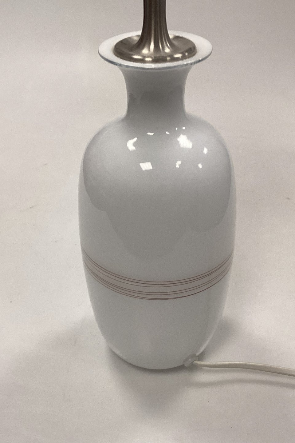 Holmegaard Melody Glas bordlampe, størrelse LilleOpalhvid lampefod med bordeaux mønster