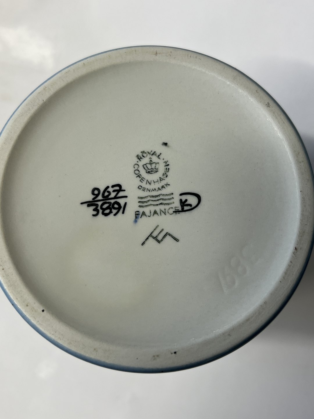 Royal Copenhagen Fajance Celeste, vase.Dekorationsnummer 967-3891