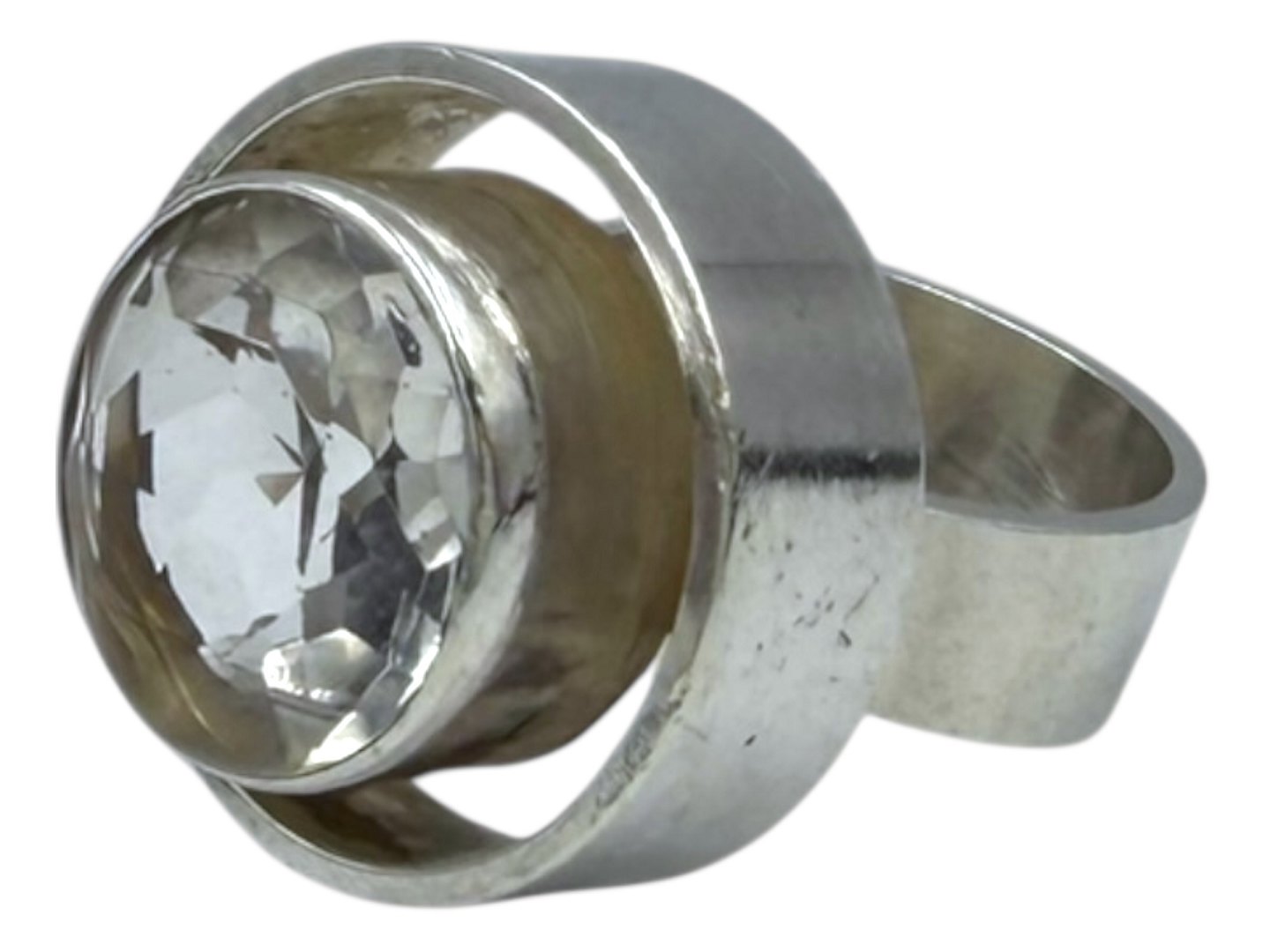 Niels Erik From sterlingsølv, stor ring med krystal.