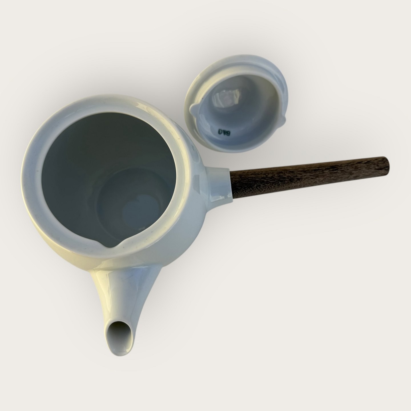 Bing & Grøndahl, Hvid Koppel, Tekande med håndtag i teak fra 1960'erne, Mål ca. 18x28cm, Design Henning Koppel *fin stand*Lager: 1