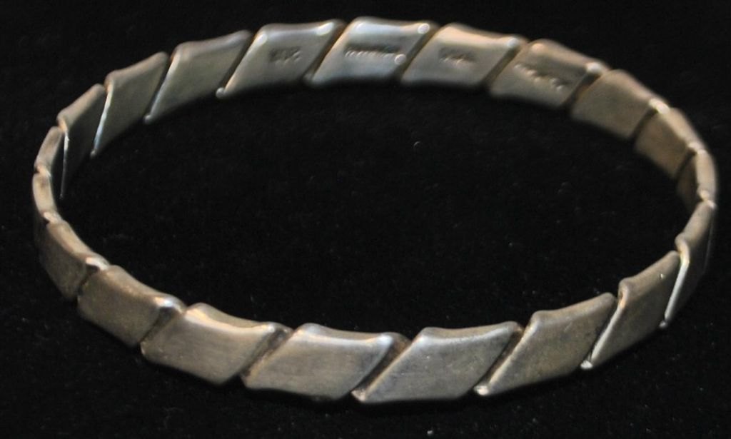Hans Hansen armring i sterling sølv, design 203. 20. årh. Kolding, Danmark. Indvendig diameter: 6,3 cm.Emne nummer: 29017