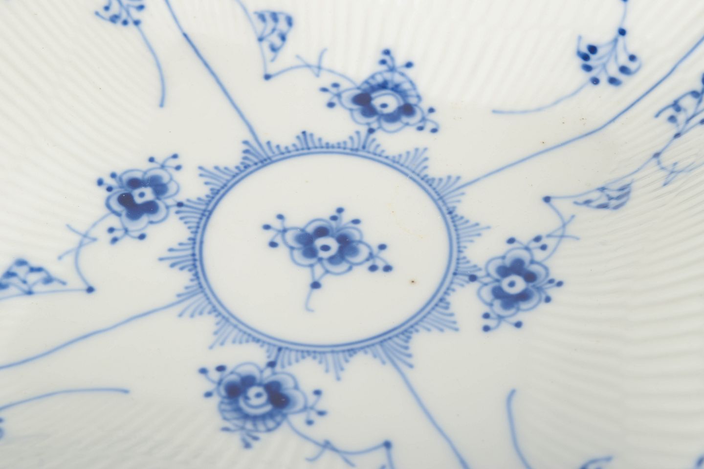 Royal Copenhagen blev grundlagt i 1775 og er en af Danmarks mest betydningsfulde porcelænsfabrikker. Fabrikken er særligt kendt for sine håndmalede dekorationer i underglasur blå, hvor Musselmalet Riflet er blandt de ældste og mest ikoniske stel. Hvert stykke er individuelt dekoreret af porcelænsmalere, hvilket gør hvert objekt unikt.