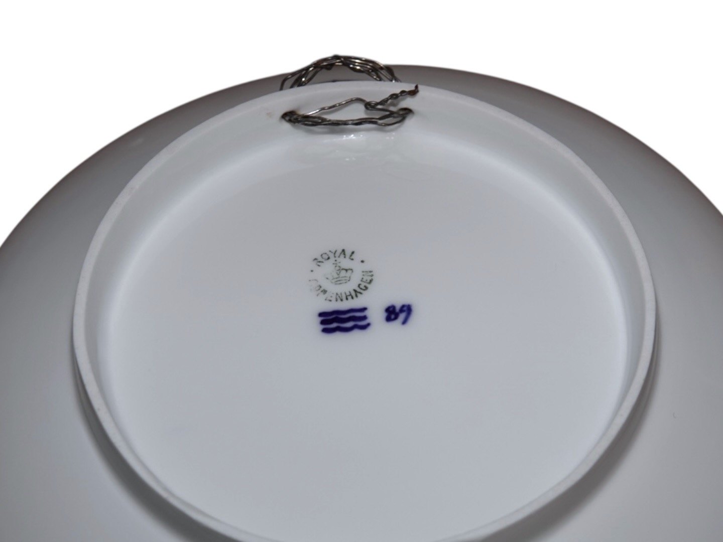 Royal Copenhagen Mindeplatte fra 1905 dekoreret med en sæl med en laks i munden i anledning af Årsmøde i Fiskeriforeningen.Designet af Arnold Krog.